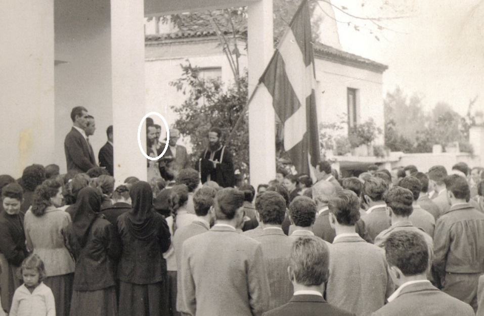 Ο Άγιος Καλλίνικος, κατά κόσμον Δημήτριος Πούλος, (1919-1984) όταν επισκέφθηκε στις 16 Νοεμβρίου 1958, τα Καλύβια, για τα εγκαίνια του Κοινοτικού Καταστήματος και του νέου Διδακτηρίου.