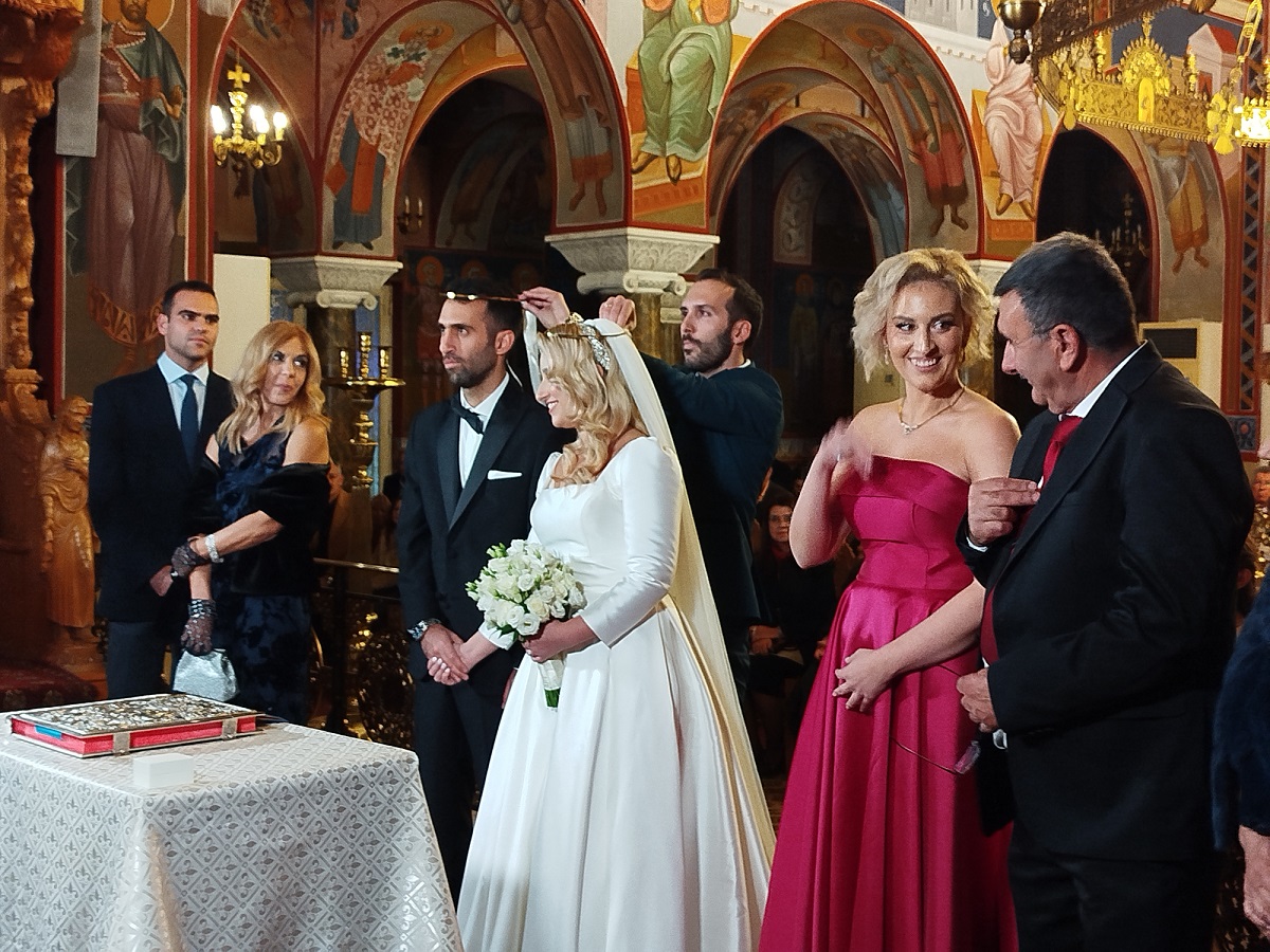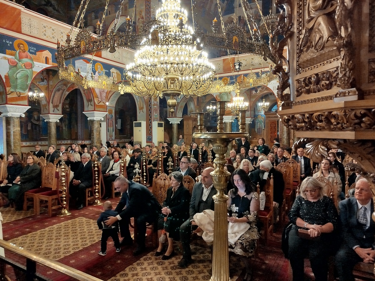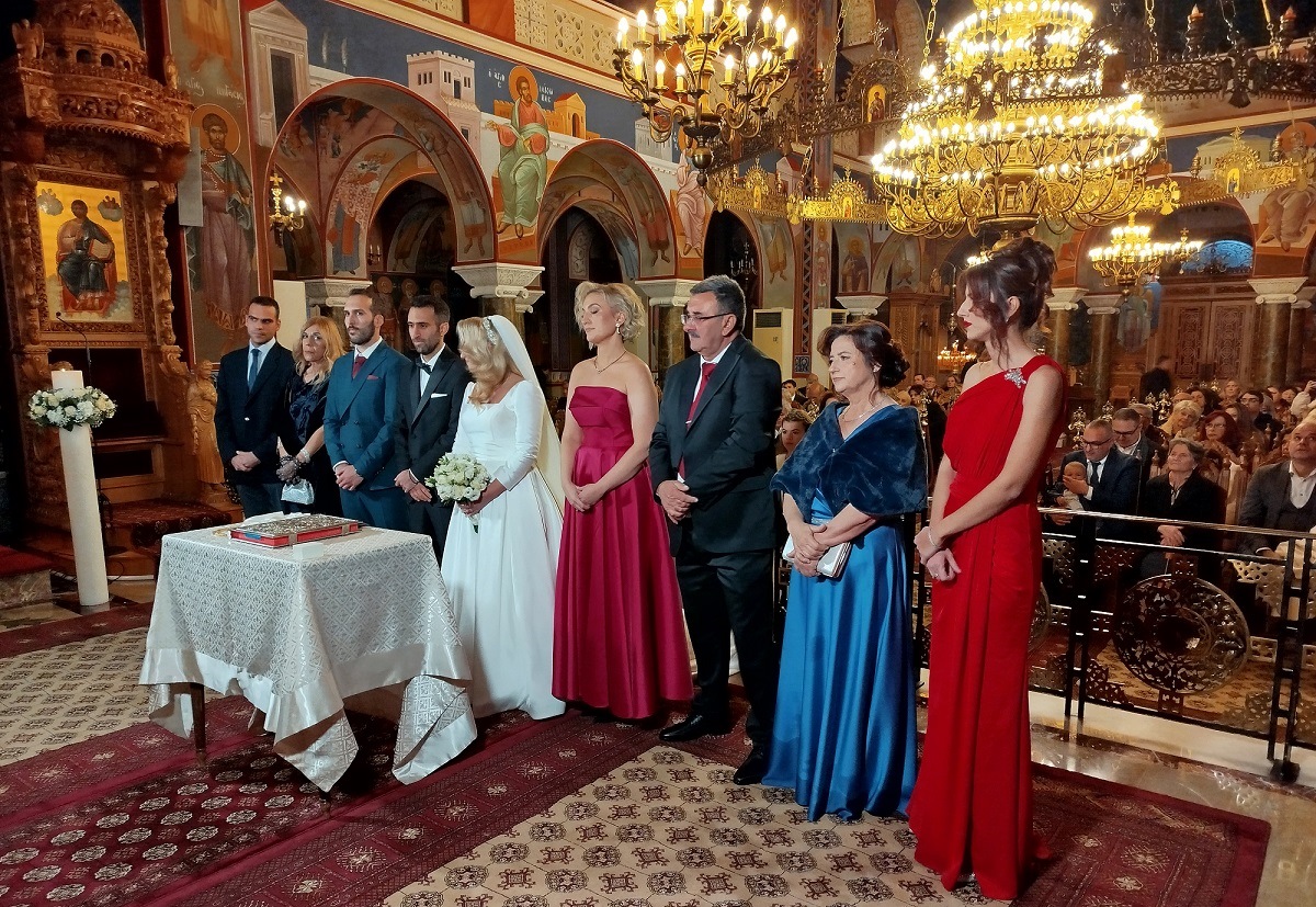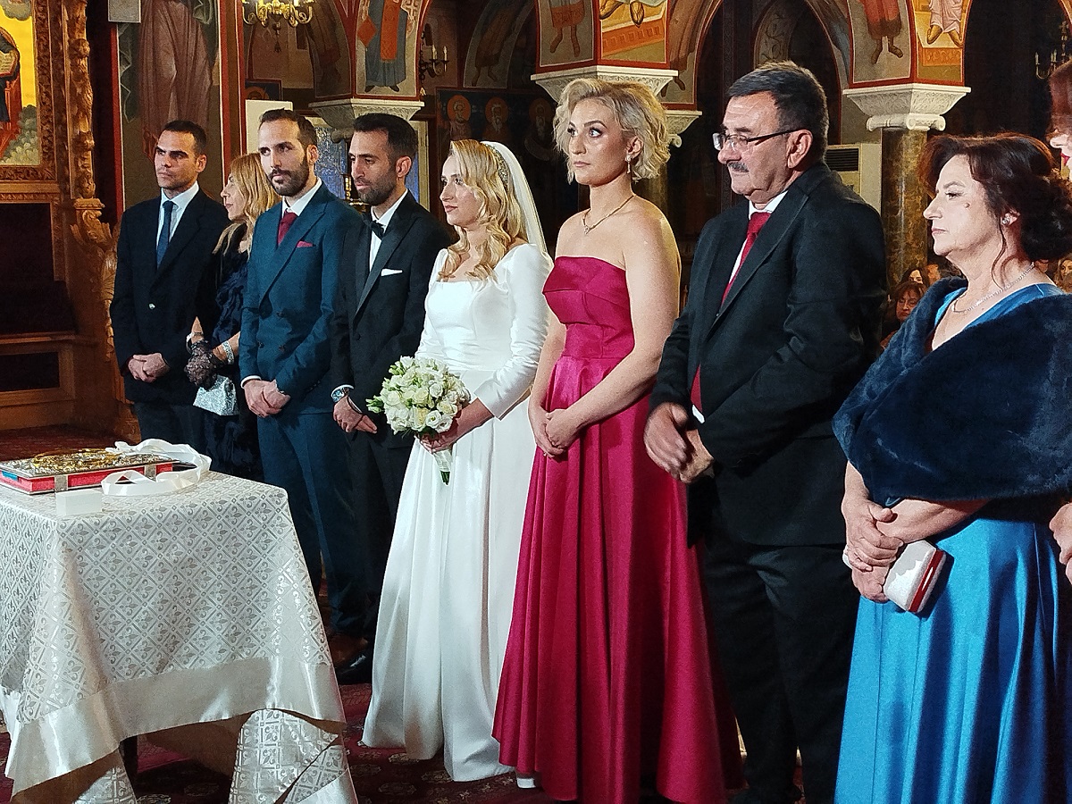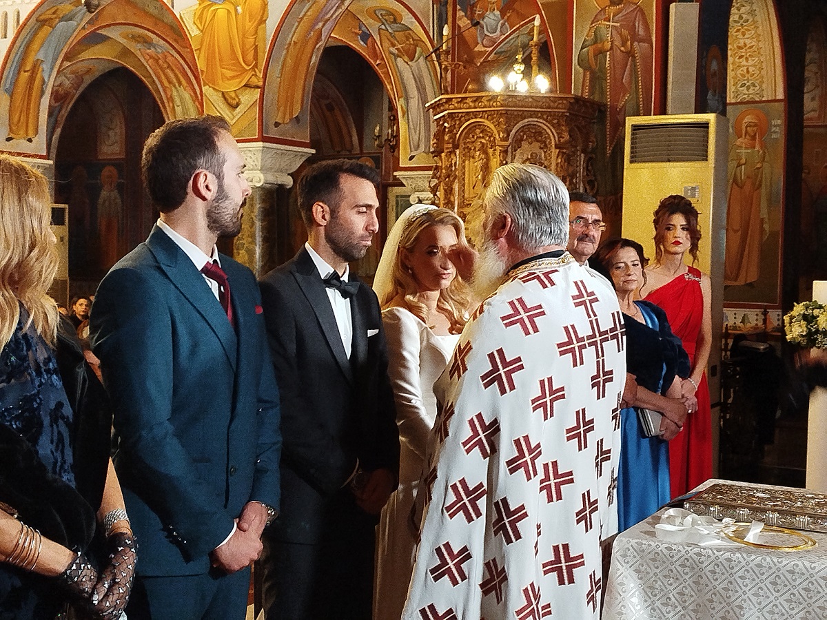Στο μυστήριο χοροστάτησε ο Αρχιμανδρίτης π. Καλλίνικος Καζαντζής που συνλειτούργησε με τους ιερείς π. Αθανάσιο Κουλοχέρη, π. Θεοδόσιο Αθανασόπουλο και π. Κωνσταντίνο Σουλιώτη, παρουσία των αγαπημένων προσώπων από τις οικογένειες των νεονύμφων, συγγενών και πολλών προσκεκλημένων.