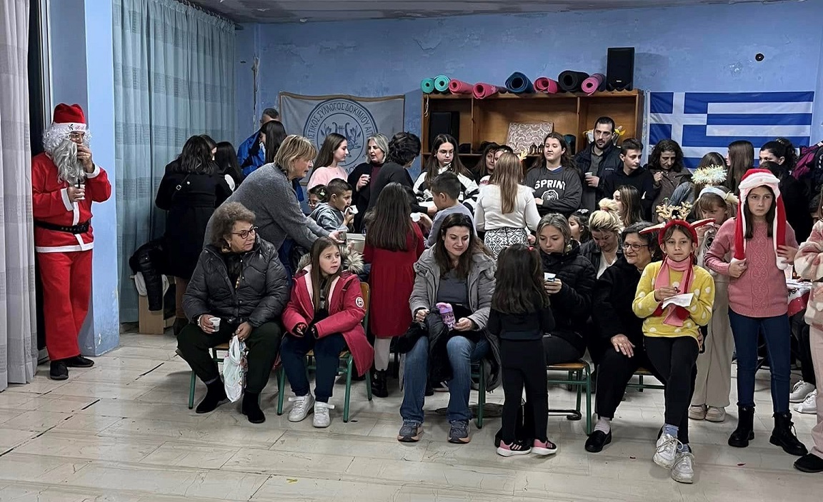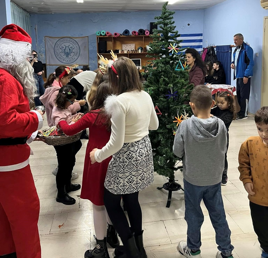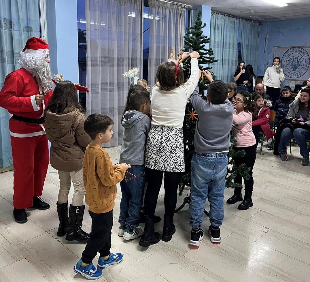 Μικροί και μεγάλοι αμέσως μετά, συγκεντρώθηκαν στην αίθουσα του συλλόγου, παρουσία του Αη Βασίλη, στόλισαν με λαμπιόνια το μικρό έλατο, μοιράσθηκαν δώρα και προσφέρθηκαν κεράσματα σε όλους!