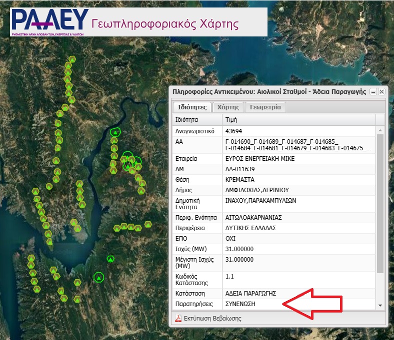 Συνολικά στην περιοχή μας σύμφωνα με τον χάρτη της ΡΑΑΕΥ (https://geo.rae.gr) υπάρχουν βεβαιώσεις (άδειες) παραγωγού για: