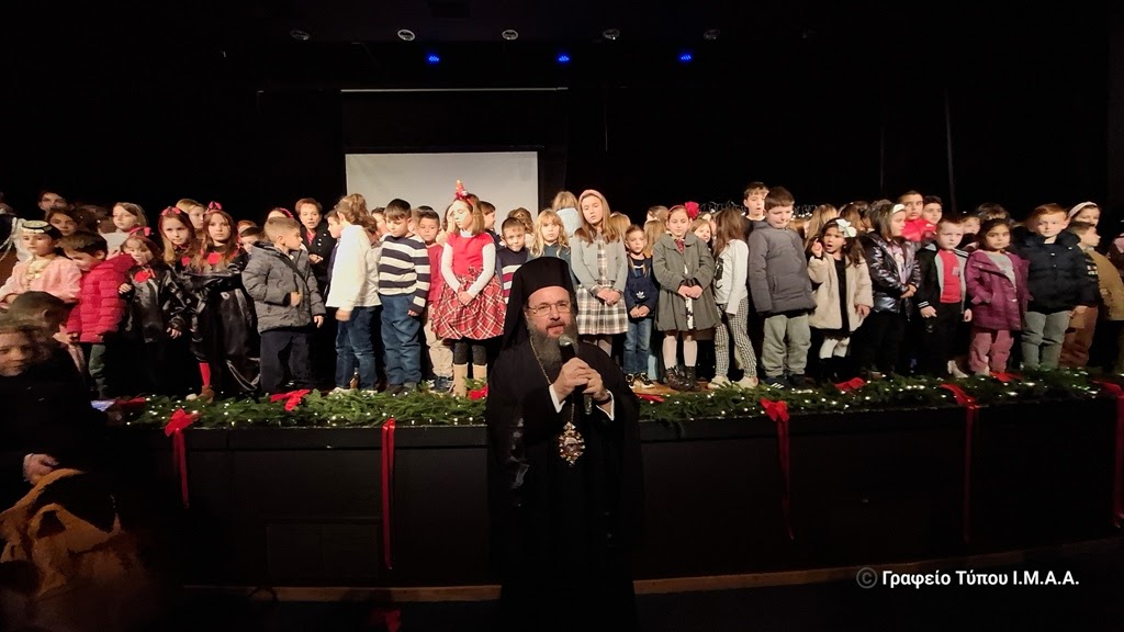 Κατά τον καταληκτήριο χαιρετισμό του ο Σεβασμιώτατος Μητροπολίτης Αιτωλίας και Ακαρνανίας κ. Δαμασκηνός εξέφρασε τη χαρά και την συγκίνησή του για την εκδήλωση του Τομέα Νεότητος της Ιεράς Μητροπόλεως στην Αρχιερατική Περιφέρεια του Αγρινίου, στην οποία συμμετείχαν περισσότερα από διακόσια πενήντα παιδιά. Ευχαρίστησε θερμά τους ιερείς των Ενοριών που συμμετείχαν για την επιμέλεια και τον κόπο που κατέβαλλαν και γιατί προσφέρουν την καρδιά τους στο έργο της νεότητας. Ευχαρίστησε τα μέλη των κατηχητικών σχολείων που τραγούδησαν και έψαλλαν τα κάλαντα, τα παιδιά που συμμετείχαν στο θεατρικό, καθώς και τα μέλη του Συλλόγου Ποντίων για την εξαιρετική παρουσία τους.