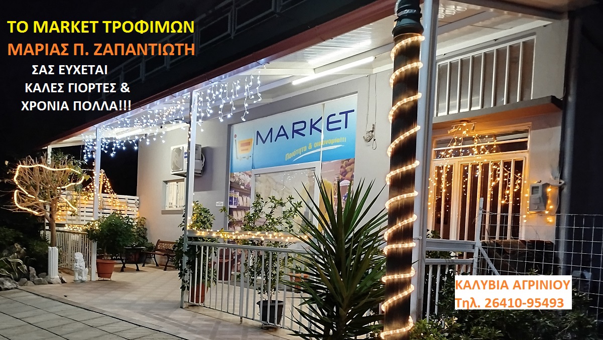 Το "Market Τροφίμων" Μαρίας Π. Ζαπαντιώτη, στα Καλύβια Αγρινίου, σας εύχεται Καλά Χριστούγεννα, Χαρούμενο και Δημιουργικό το Νέο Έτος 2025!