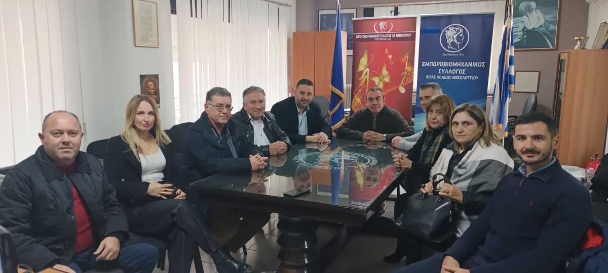 Συνάντηση με στελέχη της Περιφέρειας Δυτικής Ελλάδας με επικεφαλής τον Αντιπεριφερειάρχη Αιτωλοακαρνανίας κ. Θανάση Μαυρομμάτη πραγματοποίησε χθες Δευτέρα 23 Δεκεμβρίου, η διοίκηση του Εμποροβιομηχανικού Συλλόγου Μεσολογγίου.