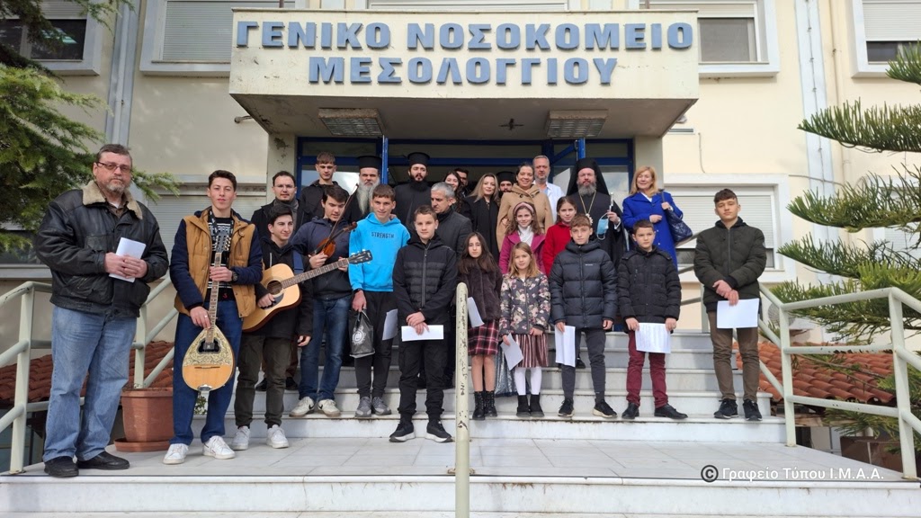 Την Πέμπτη 26 Δεκεμβρίου 2024, δεύτερη ημέρα των Χριστουγέννων, ο Μητροπολίτης Αιτωλίας και Ακαρνανίας κ. Δαμασκηνός, συνοδευόμενος από μέλη της Σχολής Βυζαντινής Μουσικής Μεσολογγίου «Άγιος Ιωάννης ο Κουκουζέλης» επισκέφθηκε το Γενικό Νοσοκομείο Μεσολογγίου. Τον υποδέχθηκε η Διοικήτρια του Νοσοκομείου κα Ελένη Φιλιπποπούλου, η Διευθύντρια Νοσηλευτικής κα Λαμπρινή Ντάκουλα και η κα Αλεξάνδρα Νότη, Υποδιευθύντρια Νοσηλευτικής. Ο Σεβασμιώτατος επισκέφθηκε τους θαλάμους νοσηλείας και αντάλλαξε εορταστικές ευχές με τους ασθενείς, τους συνοδούς, το ιατρικό και το νοσηλευτικό προσωπικό, ενώ οι νέοι έψαλλαν κάλαντα και τραγούδησαν χριστουγεννιάτικα τραγούδια, με τη συνοδεία παραδοσιακών οργάνων.