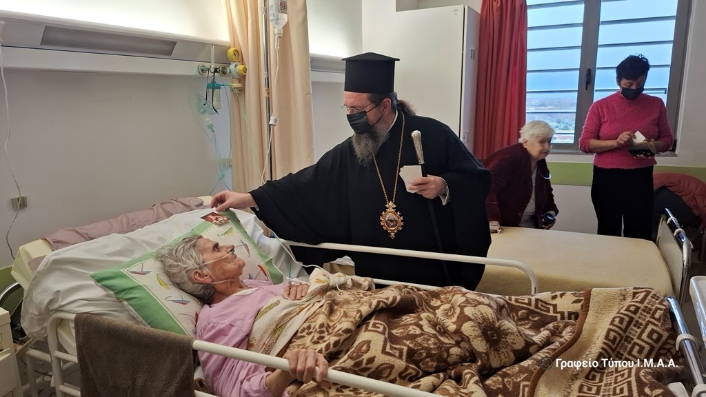 Την Δευτέρα 23 Δεκεμβρίου 2024 επισκέφθηκε το Γηροκομείο της Χριστιανικής Ενώσεως Αγρινίου, όπου αντάλλαξε ευχές με τον Πνευματικό Υπεύθυνο της Χ.Ε.Α., Ιεροκήρυκα Αρχιμ. Λαυρέντιο Καρανάσιο, τον Πρόεδρο κ. Λεωνίδα Γαρουφαλή, τα Μέλη του Δ.Σ., τους εργαζομένους και τους τροφίμους και μοίρασε χριστουγεννιάτικες ευλογίες σε όλους.