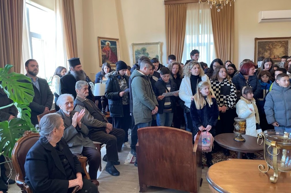 Για αυτό ήθελα να πάτε σήμερα στο Νοσοκομείο. Εκεί που οι ασθενείς είναι ξαπλωμένοι στο κρεβάτι του πόνου, στα Γηροκομεία που φιλοξενούνται ηλικιωμένοι, στα συσσίτια που σιτίζονται οι άποροι συνάνθρωποί μας. Για να δείτε, ότι έχουμε χρέος ως χριστιανοί να προσφέρουμε την αγάπη του Χριστού έμπρακτα. Και αυτό θέλω να το θυμάστε. Τότε μόνο είμαστε άνθρωποι, όταν μπορούμε να προσλαμβάνουμε τον πόνο, τον καημό, την ανάγκη του άλλου. Να μπαίνουμε στη σκέψη του, στη ζωή του, στα προβλήματα του και να κάνουμε αυτό που μπορούμε. Μόνο τότε είμαστε άνθρωποι και άξιοι μαθητές του Χριστού. Αν αδιαφορήσουμε, αν περιοριστούμε μόνο στον εαυτό μας δεν μιμούμαστε τον Χριστό. Ο σωστός χριστιανός, ο γνήσιος μαθητής του Χριστού οφείλει να βγαίνει από τον εαυτό του, από την καλοπέρασή του, από την αυτάρκειά του και να αναζητά τον πάσχοντα, τον ανήμπορο, τον αδύναμο. Γι’ αυτό λοιπόν σήμερα πήρατε μαθήματα ζωής. Δώσατε στιγμές χαράς στους ανθρώπους. Είδατε τί σημαίνει να είναι κανείς ξαπλωμένος στο κρεβάτι της ασθένειας. Τί σημαίνει να είναι κάποιος ηλικιωμένος και να βρίσκεται σε ένα γηροκομείο. Στα πρόσωπά σας οι ηλικιωμένοι είδαν τα εγγόνια τους. Στο συσσίτιο είδατε τί προσφέρει καθημερινά η Εκκλησία. Πήρε το θαύμα του πολλαπλασιασμού των άρτων και το μετέφερε όχι μονάχα μέσα στη Θεία Λειτουργία, όπου κοινωνούμε τον ουράνιο άρτο, αλλά και στα συσσίτια για να προσφέρει φαγητό σε αυτούς που το στερούνται. Δεν υπάρχει χειρότερη κατάσταση για έναν άνθρωπο, από το να πεινάει και να μην έχει να φάει».
