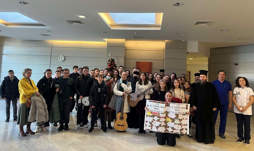 Η δεύτερη ομάδα, με επικεφαλής τον Αρχιμ. Νεκτάριο Τριάντη επισκέφθηκαν το Γενικό Νοσοκομείο Αγρινίου. Ευχήθηκαν χρόνια πολλά στους ασθενείς, τους συνοδούς, το ιατρικό και νοσηλευτικό προσωπικό, μοίρασαν χριστουγεννιάτικες κάρτες και γλυκά και τραγούδησαν κάλαντα από όλη την Ελλάδα, προσφέροντας χαρά σε όλους όσοι αυτές τις ημέρες βρίσκονται στο κρεβάτι του πόνου και της ασθένειας.