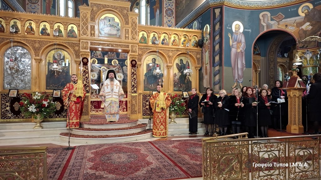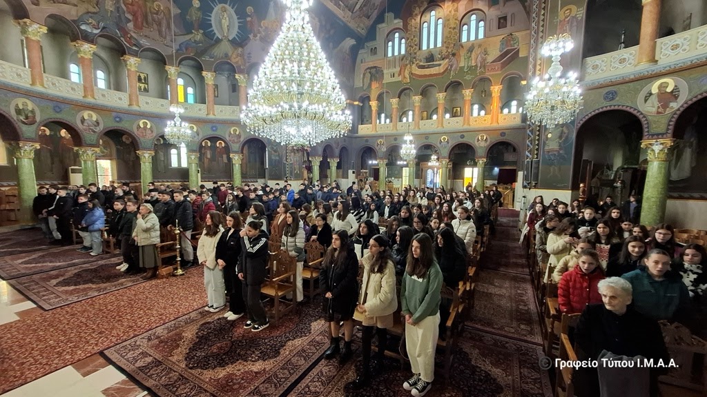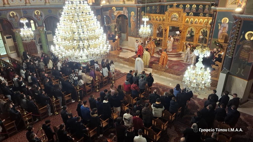 Αρχικά στον Ιερό Ναό Αγίου Δημητρίου Αγρινίου τελέσθηκε η ακολουθία του Όρθρου και η αρχιερατική Θεία Λειτουργία, προεξάρχοντος του Σεβασμιωτάτου Μητροπολίτου Αιτωλίας και Ακαρνανίας κ. Δαμασκηνού, με την συμμετοχή των μελών των κατηχητικών συνάξεων Γυμνασίου και Λυκείου της Ιεράς Μητροπόλεως. Το ιερό αναλόγιο διηκόνησε εξαιρετικά η γυναικεία χορωδία του Ιερού Ναού, υπό την διεύθυνση της κ Γεωργίας Βουλδή.