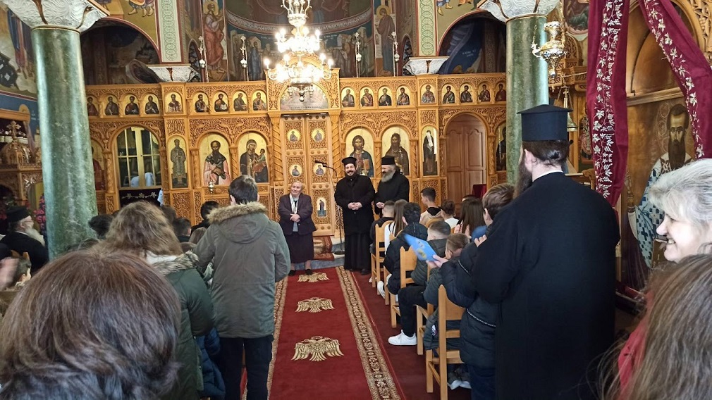 «Αλήθεια, δεν υπάρχει τρόπος να σας εκφράσω τη χαρά μου σήμερα. Είμαι πάρα πολύ χαρούμενος παιδιά μου» ανέφερε χαρακτηριστικά και συνέχισε «Είδατε πόσο όμορφη είναι η παράδοσή μας και η πίστη μας. Αλίμονο αν χάσουμε αυτή την πίστη και αυτή την παράδοση. Προσευχήθηκα πολύ για όλους σας σήμερα στη Θεία Λειτουργία, γιατί ξέρω, ότι είστε σε μία δύσκολη ηλικία. Έχετε εισέλθει στην εφηβεία και παρόλα αυτά έχετε ήδη πει το μεγάλο ναι και συμμετέχετε στις κατηχητικές μας δράσεις. Θέλω να σας ευχαριστήσω για αυτό. Είναι πάρα πολύ ελπιδοφόρο, ότι τόσοι πολλοί νέοι άνθρωποι συμμετέχετε στις κατηχητικές δράσεις της τοπικής μας Εκκλησίας. Μέσα στο κατηχητικό αισθάνεστε αυτό που βιώσαμε σήμερα, ότι η Εκκλησία είναι μια μεγάλη οικογένεια. Και μέσα στην Εκκλησία απολαμβάνουμε και εισπράττουμε την αγάπη του Χριστού».