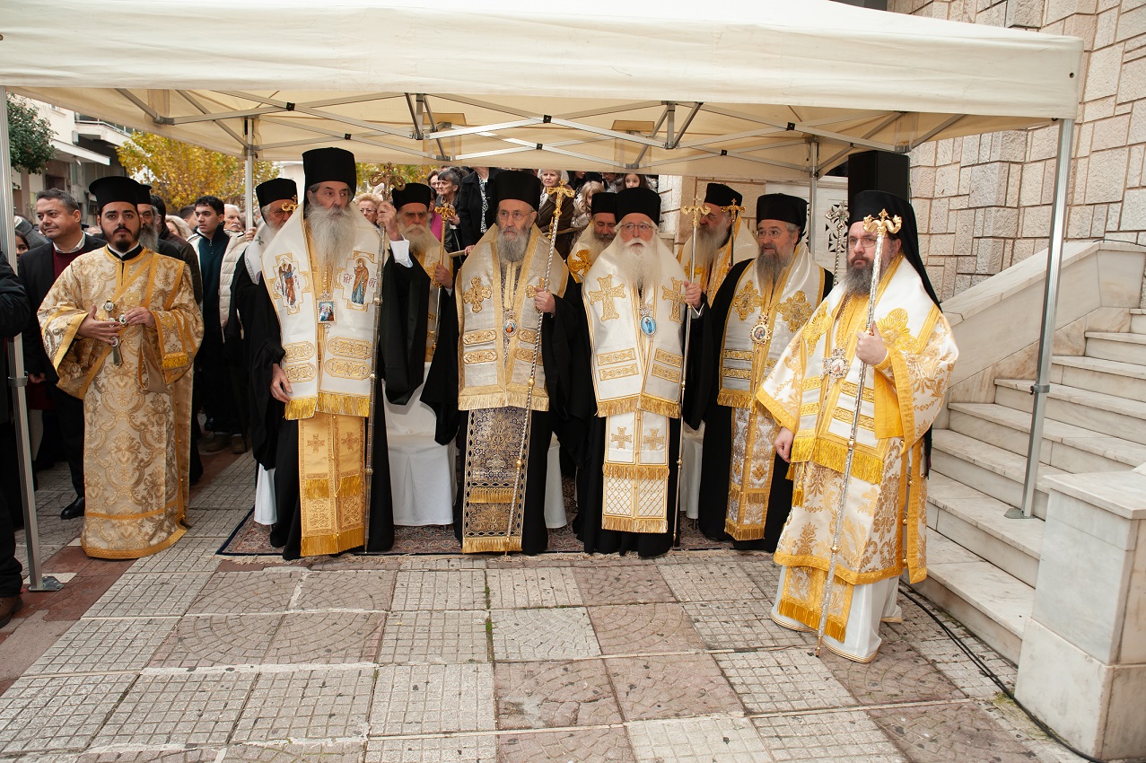 Στην τελετή παρευρέθηκαν οι Σεβασμιότατοι Μητροπολίτες Ναυπάκτου και Αγίου Βλασίου κ. Ιερόθεος, Δημητριάδος και Αλμυρού κ. Ιγνάτιος, Πειραιώς και Φαλήρου κ. Σεραφείμ, Λευκάδος και Ιθάκης κ. Θεόφιλος, Θηβών και Λεβαδείας κ. Γεώργιος, Άρτης κ. Καλλίνικος, Νικοπόλεως και Πρεβέζης κ. Χρυσόστομος, Κεφαλληνίας κ. Δημήτριος, Μαντινείας και Κυνουρίας κ. Επιφάνιος.