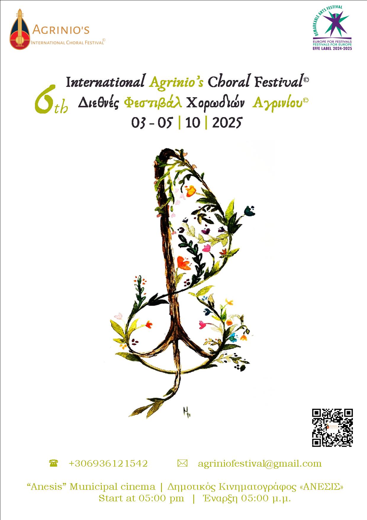 Επίσης ανακοινώθηκε ότι, και το 6ο Διεθνές Φεστιβάλ Χορωδιών Αγρινίου που θα διεξαχθεί το διάστημα 3, 4 & 5 Οκτωβρίου 2025 έχει και Ευρωπαϊκή αναγνώριση, αφού πληροί όλα τα κριτήρια του Ευρωπαϊκού οργανισμού European Festivals Association.