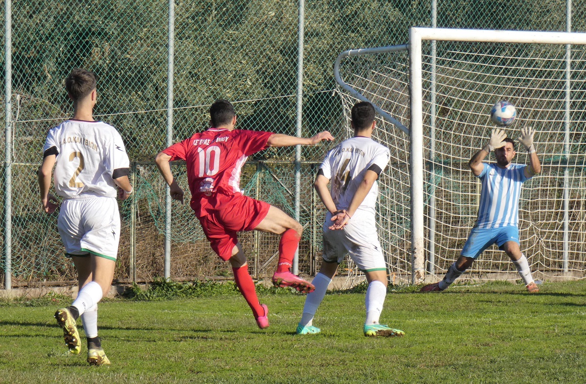 Η ομάδα του ΠΑΟ Καλυβίων, δείχνοντας καλά αγωνιστικά στοιχεία, προσπάθησε να περιορίσει τις επιθετικές πρωτοβουλίες του αντιπάλου της και στο β΄ μέρος οι παίκτες του ανέβασαν αρκετά την απόδοσή τους.