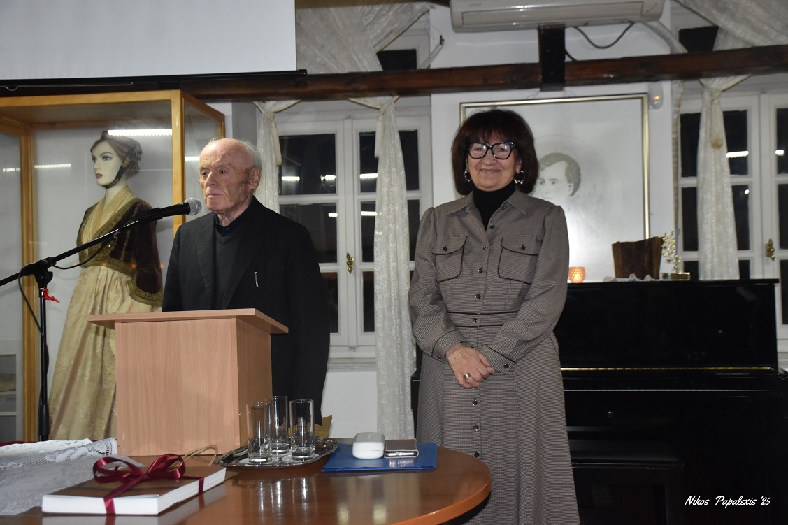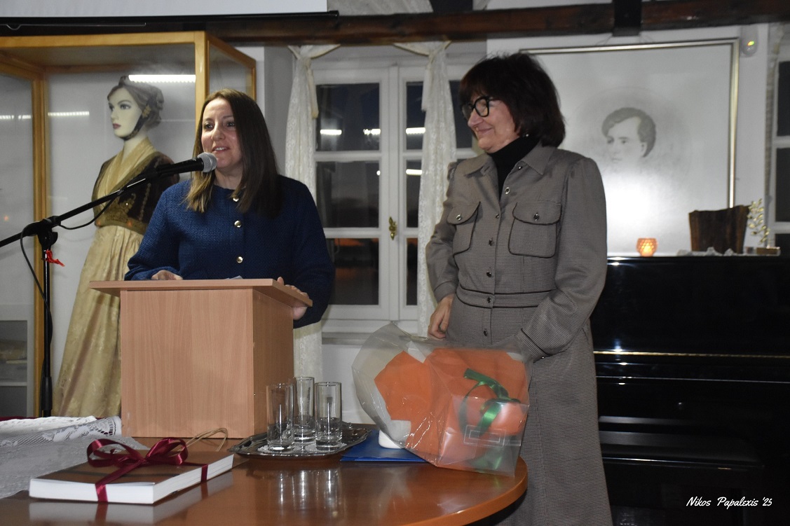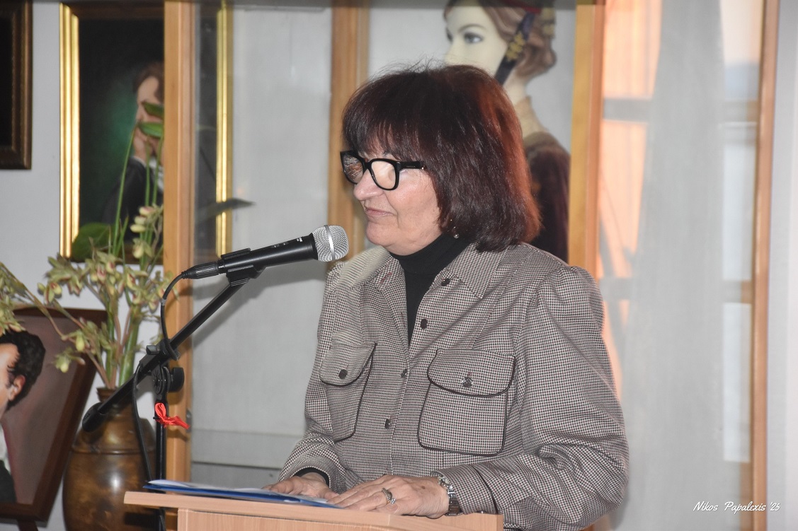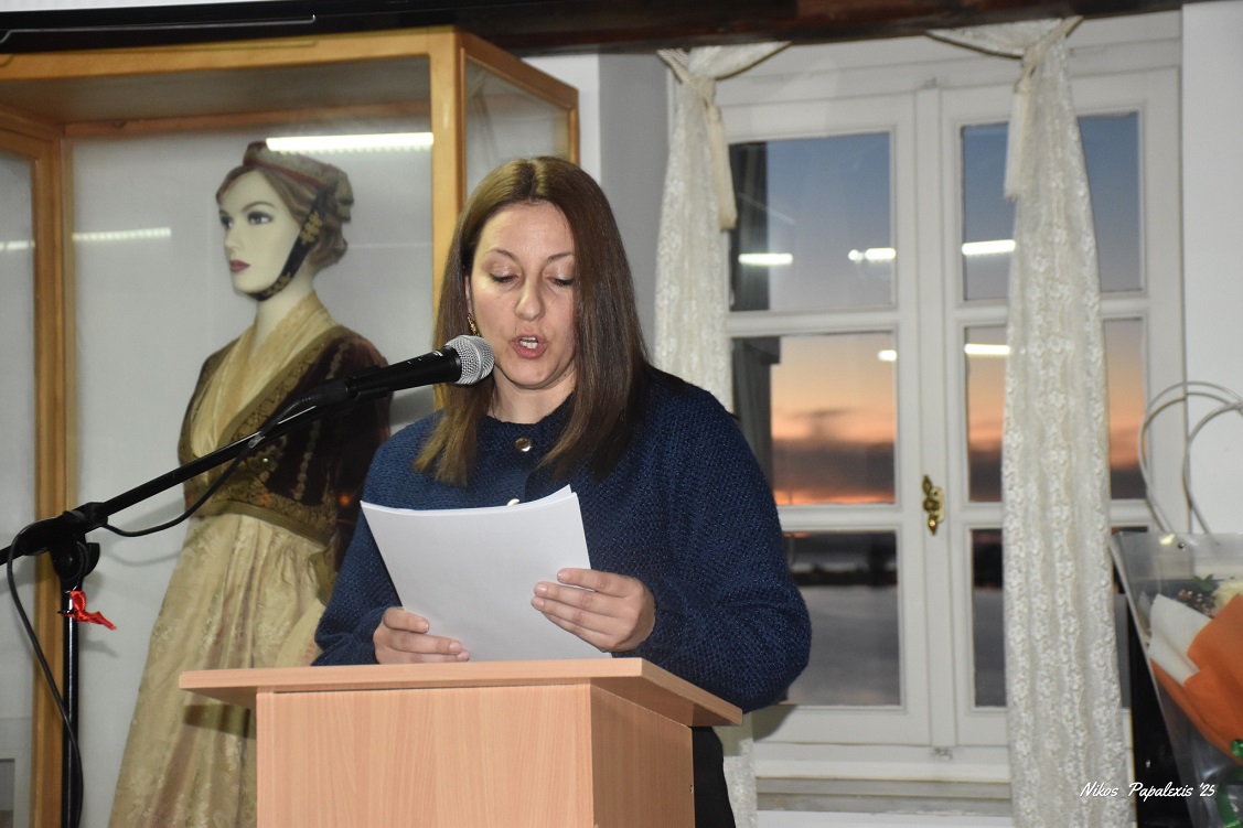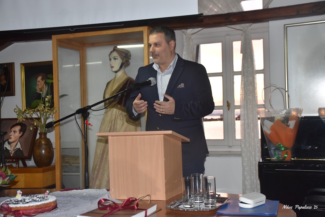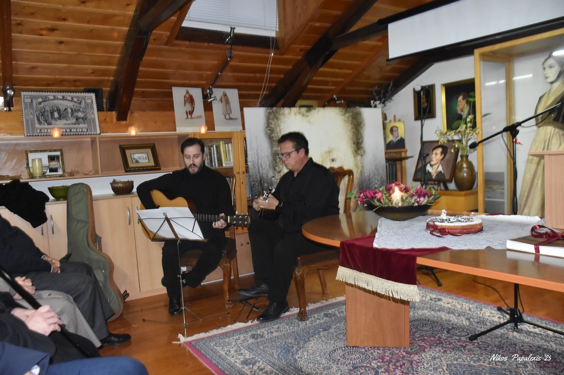 Η Φιλόλογος κα Μαρία Καρατζογιάννη μίλησε με θέμα: «Ο Λόρδος Βύρων στην ποίηση του Διονυσίου Σολωμού». Ένα αφιέρωμα μουσικής και λόγου στους εκφραστές της ελληνικής ψυχής κατά την περίοδο της Επανάστασης του 1821. Δύο σπουδαίοι ποιητές, ο αγώνας για την Ελευθερία και η Ιερή Πόλη που τους ενέπνευσε.