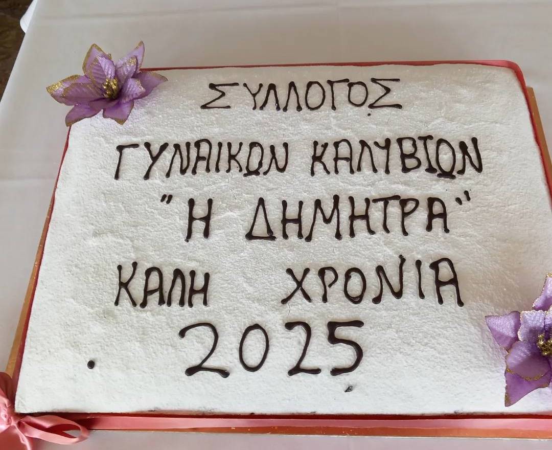 Ο Σύλλογος Γυναικών Καλυβίων «Δήμητρα» σε εορταστικό κλίμα έκοψε την βασιλόπιτα για τη νέα χρονιά, εκδήλωση που πραγματοποιήθηκε χθες Κυριακή 2 Φεβρουαρίου, στο κέντρο "Αρχονταρίκι" στην πλατεία του οικισμού Αγίου Γεωργίου Καλυβίων.