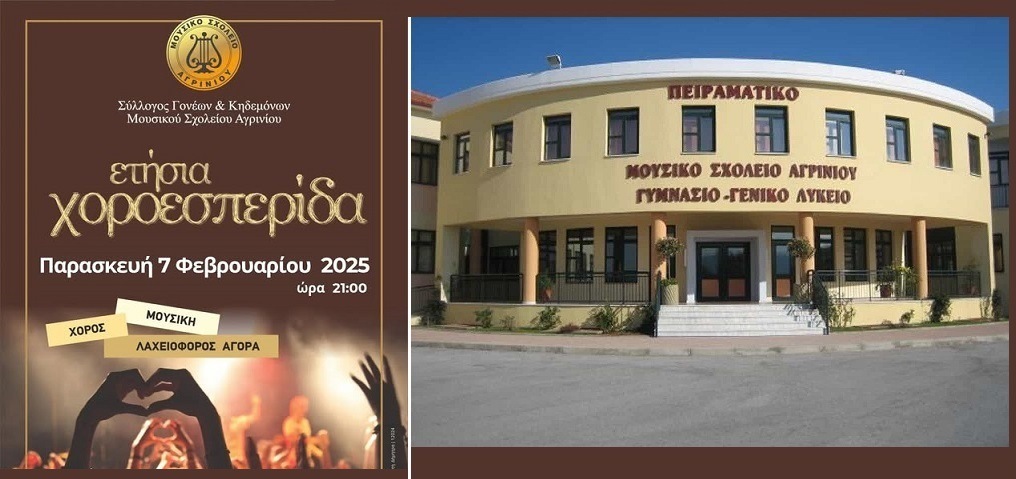 Σε ανακοίνωσή του το Δ.Σ. του Συλλόγου Γονέων & Κηδεμόνων του Μουσικού Σχολείου Αγρινίου, ενημερώνει ότι, διοργανώνει την ετήσια Χοροεσπερίδα που θα πραγματοποιηθεί την Παρασκευή 7 Φεβρουαρίου στις 21:00 μ.μ. στο κέντρο "Πιθάρι" στο Αγρίνιο και στην οποία καλούνται όλοι οι γονείς και κηδεμόνες-μέλη του συλλόγου.