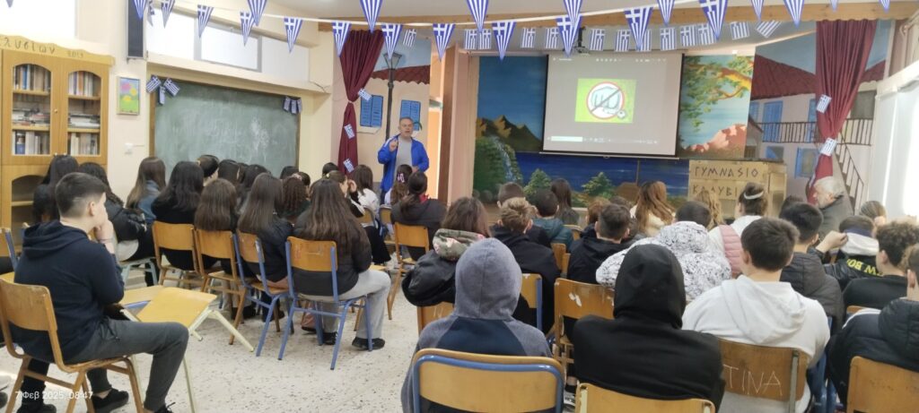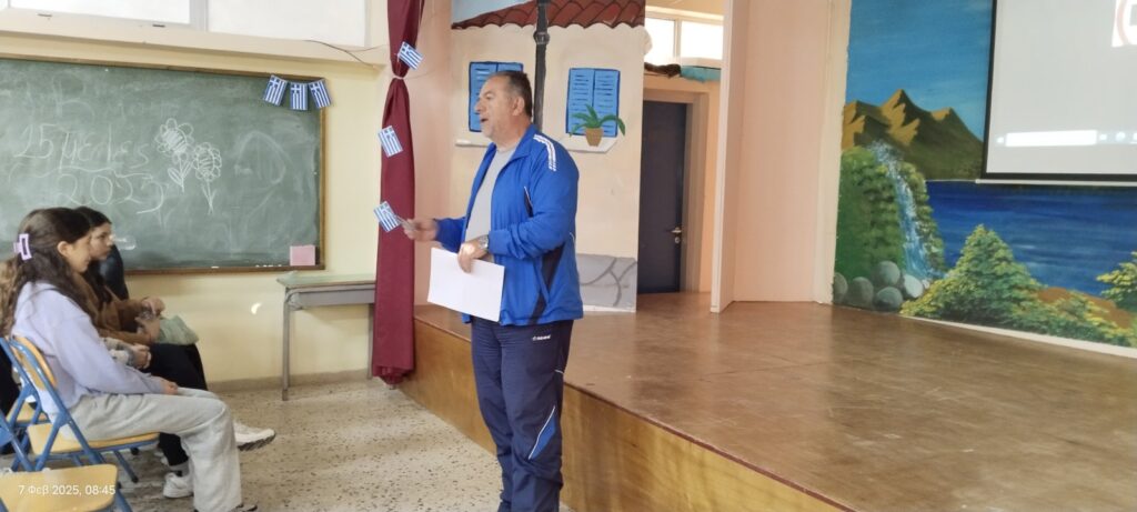 Στο Ημερήσιο Γυμνάσιο Καλυβίων σήμερα 7 Φεβρουαρίου 2025 πραγματοποιήθηκε η Πανελλήνια Ημέρα Φιλάθλου σύμφωνα με τις οδηγίες σχετικού εγγράφου του Υπουργείο Παιδείας & Αθλητισμού. Στην αρχή της δράσης ο Καθηγητής Φυσικής Αγωγής, κ. Χρήστος Μπεκούλης, πραγματοποίησε ενημερωτική – διαδραστική ομιλία προς τους μαθητές για την ιδέα του αθλητισμού, τις αξίες που πρεσβεύει και το Φίλαθλο Πνεύμα ως τρόπο ζωής.