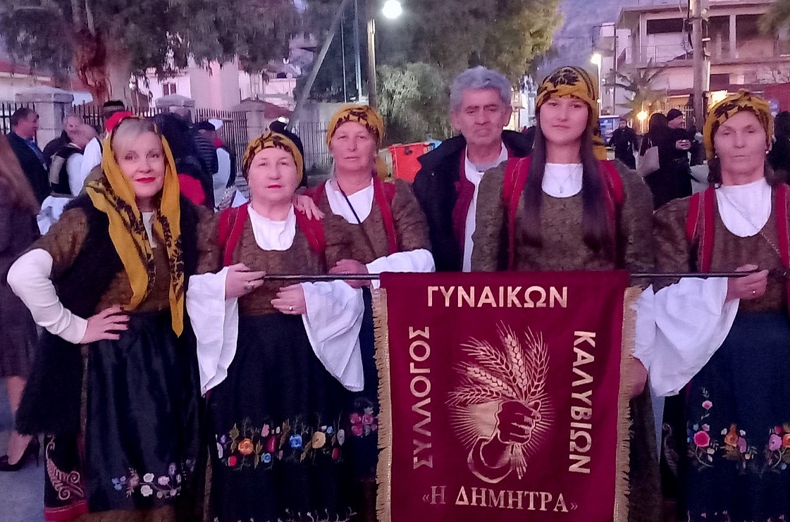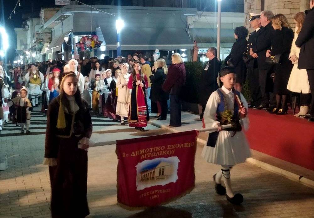 Ο Καλυβιώτικος σύλλογος, με την Πρόεδρο Μαίρη Ζαπαντιώτη – Στρατοπούλου και κυρίες που κρατούσαν το λάβαρο, για μια ακόμη χρονιά παρευρέθηκαν στις εκδηλώσεις που γίνονται με λαμπρότητα στην ιστορική κωμόπολη του Αιτωλικού.