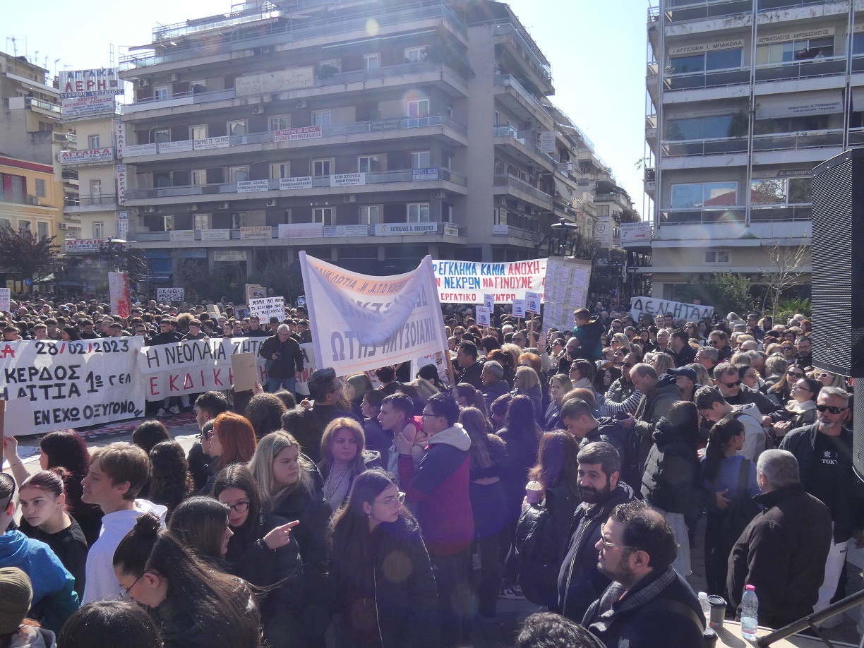 Μια μεγαλειώδης συγκέντρωση διαμαρτυρίας για την συμπλήρωση 2 χρόνων από το τραγικό σιδηροδρομικό δυστύχημα όπου χάθηκαν 57 αθώες ψυχές, στα Τέμπη, πραγματοποιήθηκε στις 11 το πρωί στην κεντρική πλατεία Δημοκρατίας στο Αγρίνιο παρουσία χιλιάδων πολιτών.