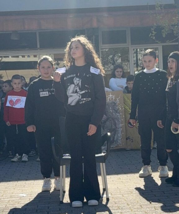 Επιπλέον, οι μαθητές δημιούργησαν και παρουσίασαν πανό και αφίσες, στα οποία αποτύπωσαν με ζωγραφιές και μηνύματα την αξία της ενσυναίσθησης και της αποδοχής του άλλου. Κάθε μαθητής είχε την ευκαιρία να εκφράσει τη δική του θέση, και τα έργα τους γέμισαν τον σχολικό χώρο με χρώματα και μηνύματα ελπίδας.