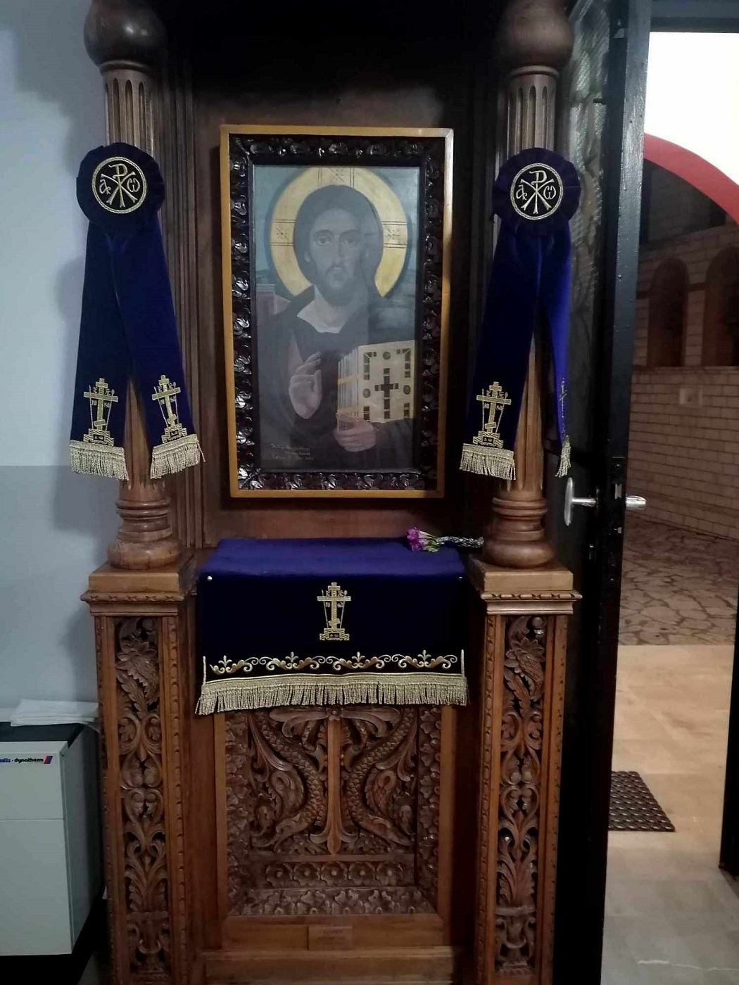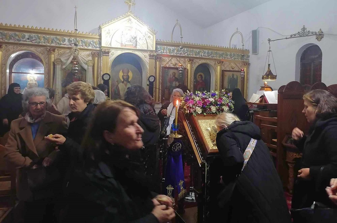 Κατά την παραμονή των προσκυνητών στην Ιερά Μονή τελέσθηκε από τον ιερέα π. Θεοδόσιο Αθανασόπουλο, Προηγιασμένη Θεία Λειτουργία.