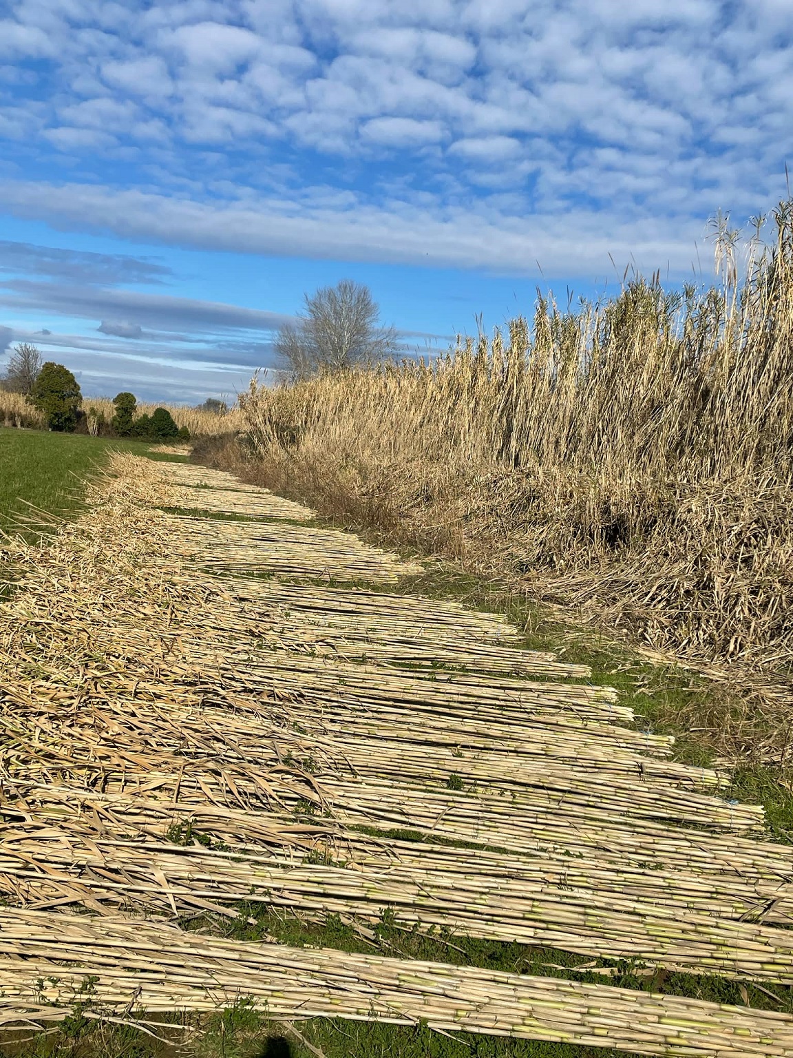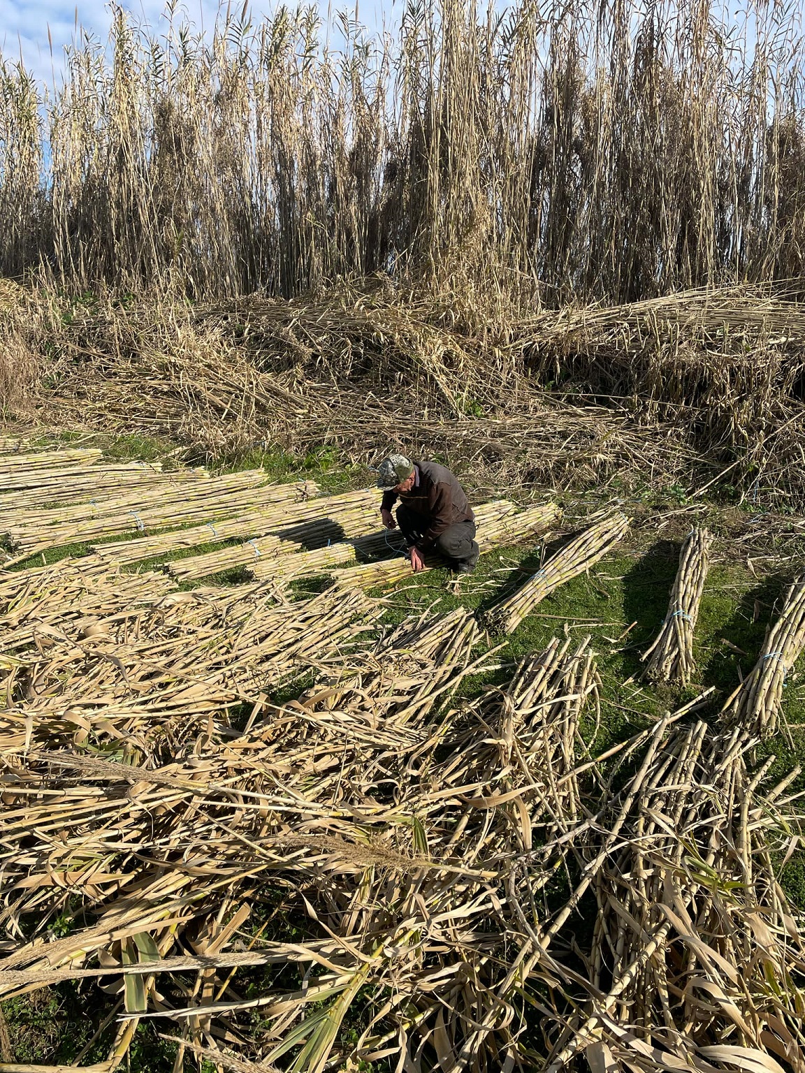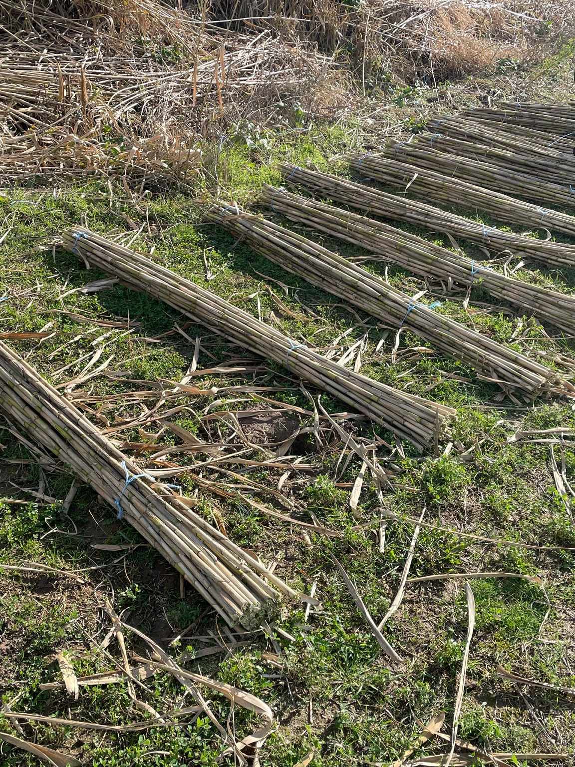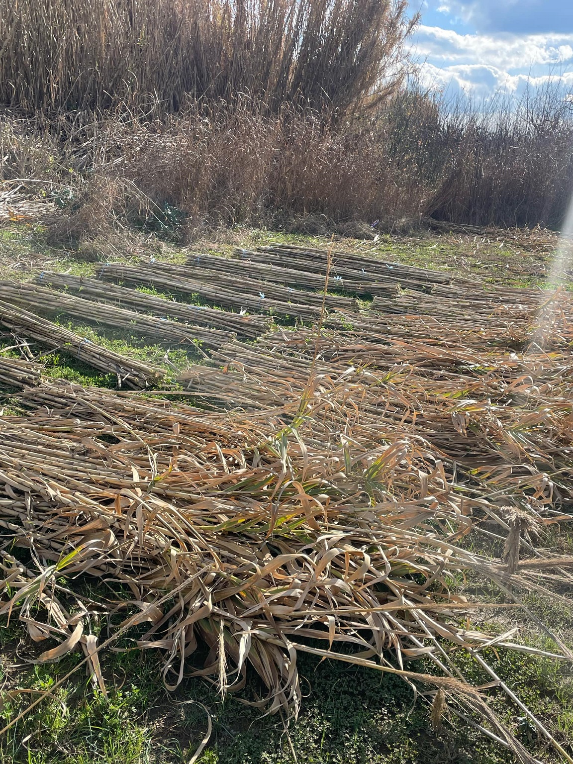 Σε διάφορα σημεία του οδικού και αγροτικού δικτύου του χωριού μας, συναντάμε συνεργεία που κόβουν καλάμια ή έτοιμες στοίβες από δεμάτια καλαμιών που περιμένουν τη σειρά τους για να «φύγουν» σε άλλες περιοχές.