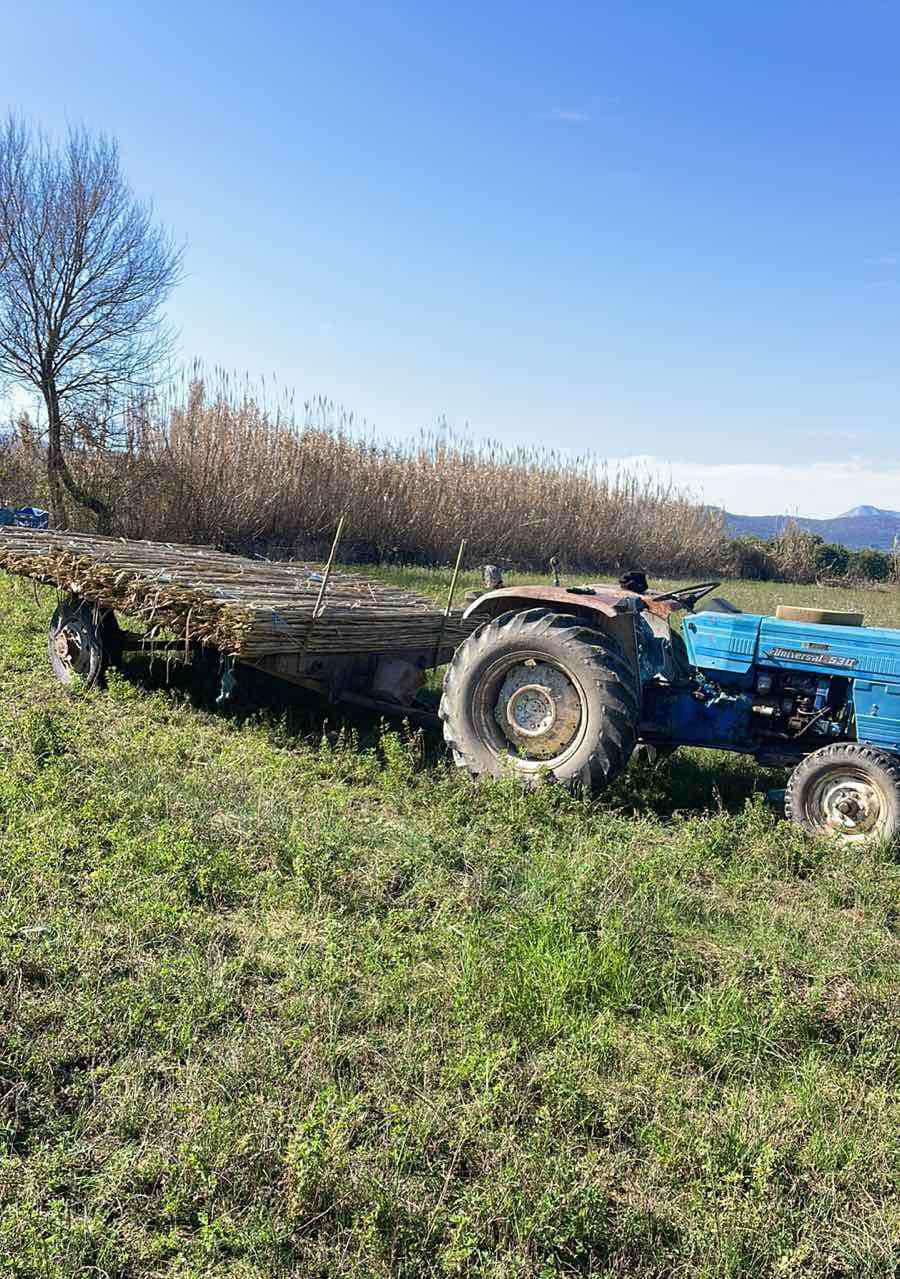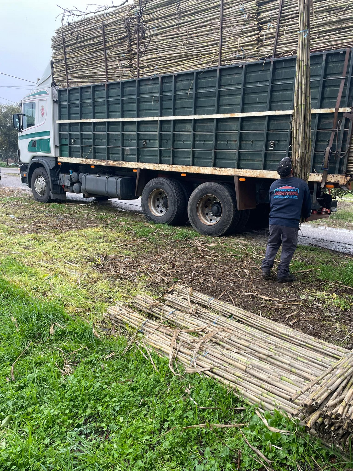 Οι εργάτες με κοπίδια, πριόνια και αλυσοπρίονα κόβουν τα καλάμια, τα τεμαχίζουν, τα δένουν σε δεμάτια 20-30 τεμαχίων και τα φορτώνουν κατόπιν στα τρακτέρ και στα φορτηγά, για να μεταφερθούν στη συνέχεια σε ντόπιους αγοραστές ή σε αγροτικές φάρμες κυρίως της Βόρειας Ελλάδας!