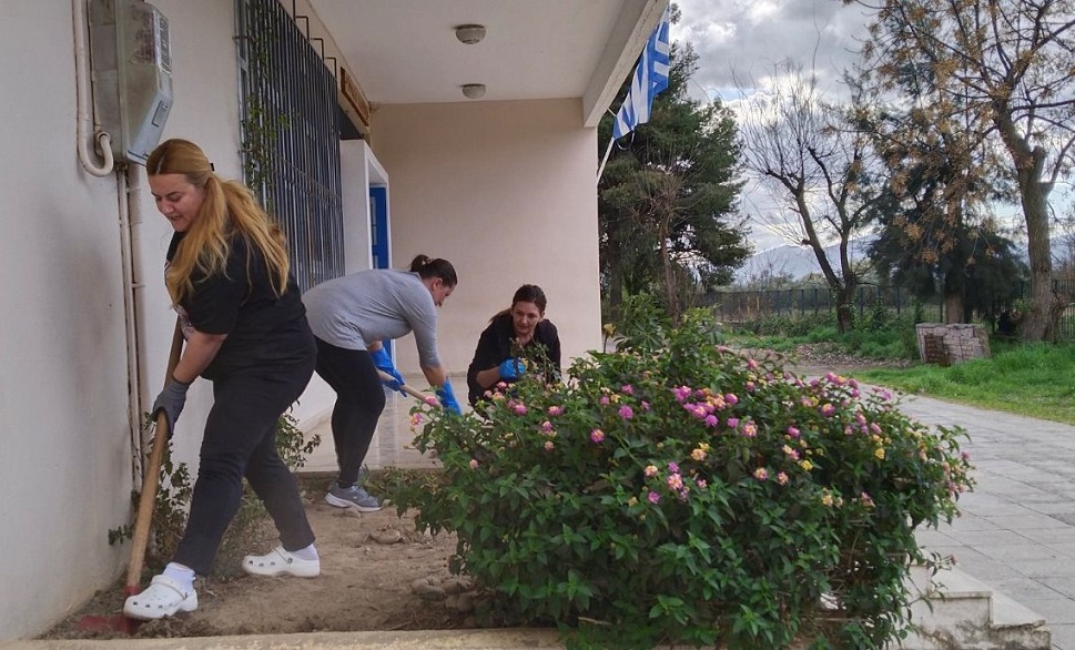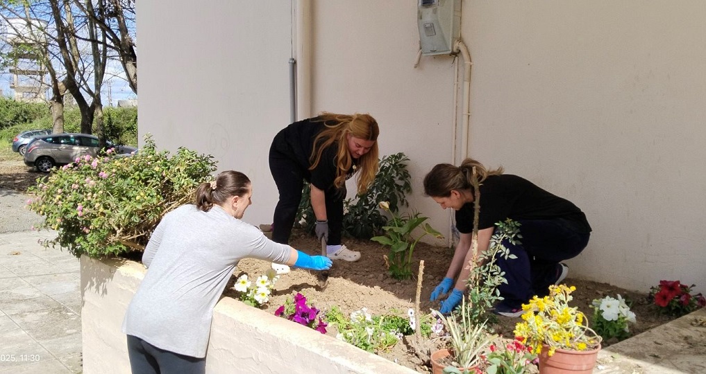 Μια ωραία εθελοντική πρωτοβουλία έλαβε χώρα σήμερα στον προαύλιο χώρο του Γυμνασίου Καλυβίων, όπου στο πλαίσιο της δράσης «Σχέσεις Σχολείου Οικογένειας» κυρίες του Συλλόγου Γονέων και Κηδεμόνων, φύτεψαν καλλωπιστικά φυτά στην είσοδο του σχολείου, χαρίζοντας αισθητική αναβάθμιση σε ανοιξιάτικους τόνους.