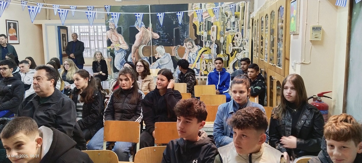 Στην αίθουσα εκδηλώσεων του Γυμνασίου Καλυβίων, με την παρουσία εκπαιδευτικών και μαθητών, πραγματοποιήθηκε το πρωί η σχολική γιορτή για την Εθνική Επέτειο της ¨25ης Μαρτίου 1821¨.