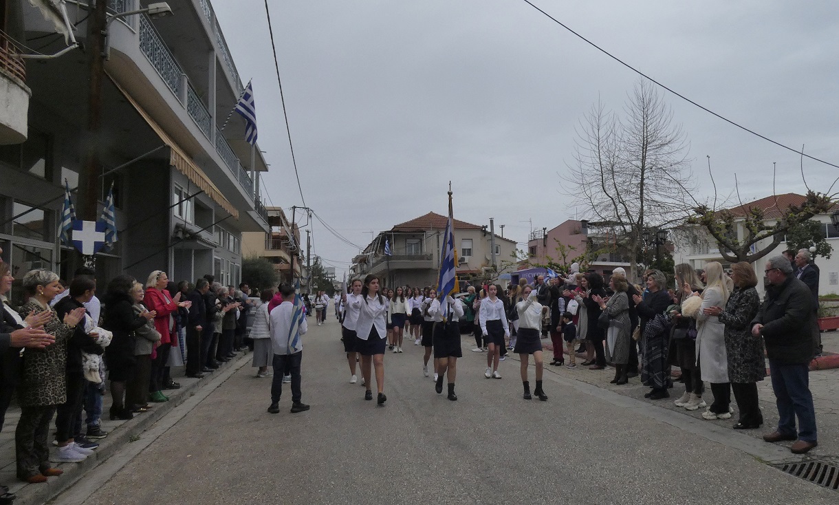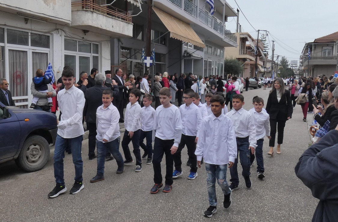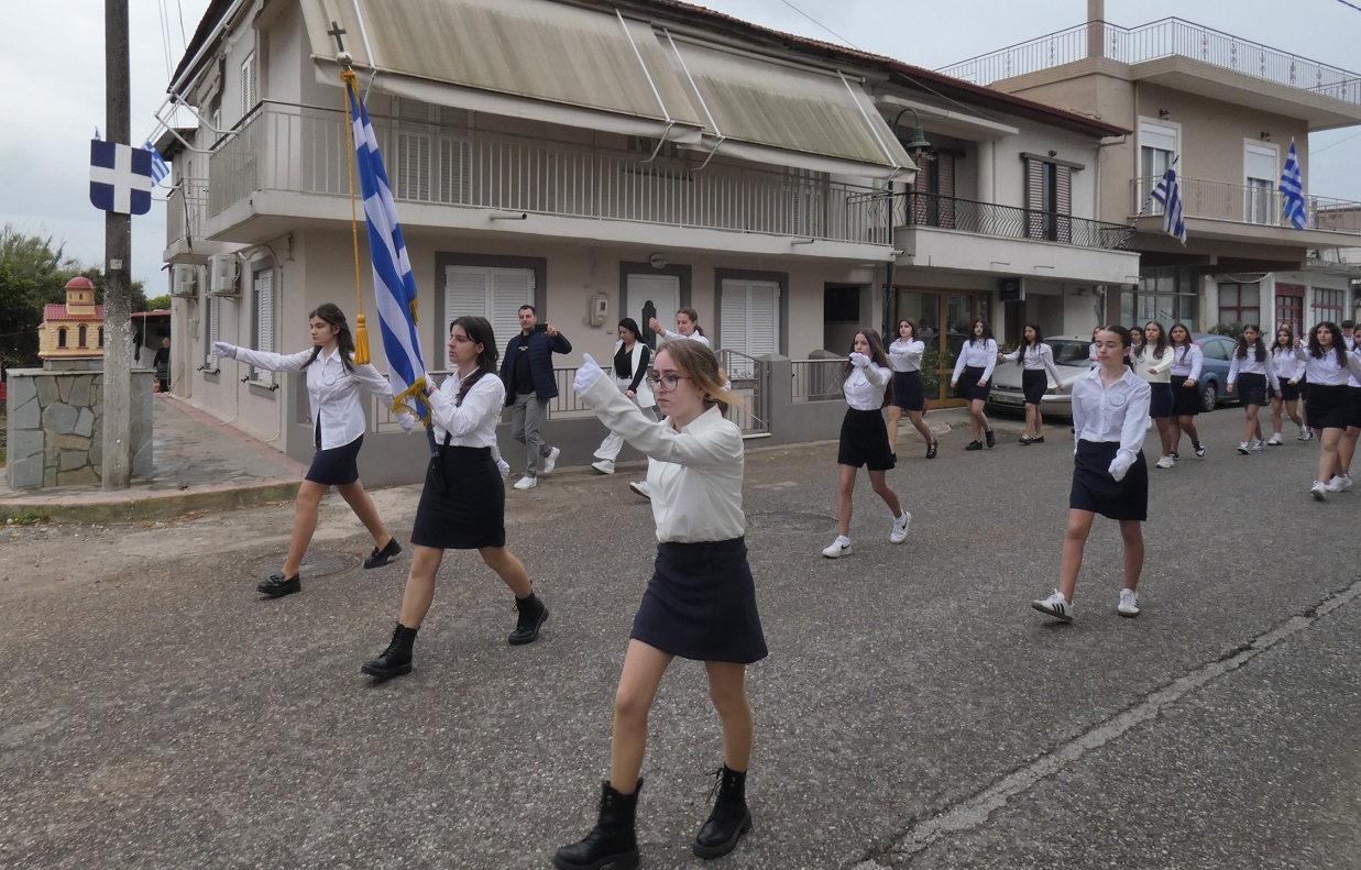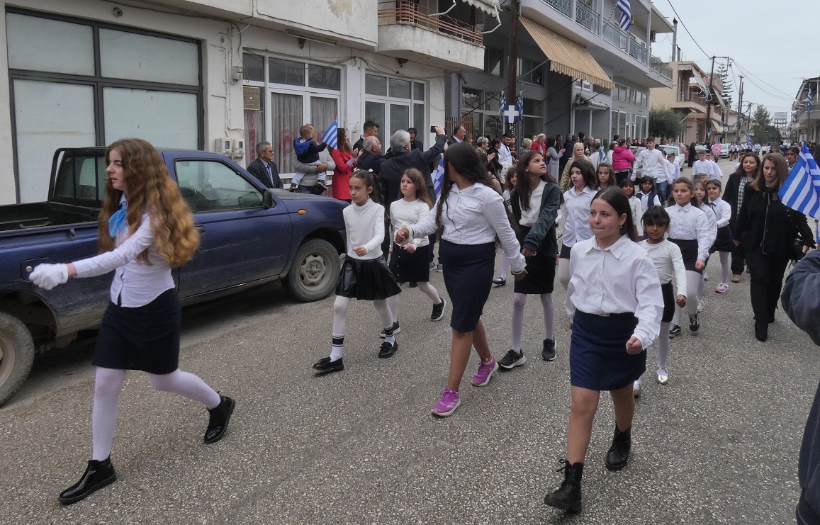 Αμέσως μετά, στους κεντρικούς δρόμους του χωριού μας, οι κάτοικοι παρακολούθησαν και χειροκρότησαν την παρέλαση των μαθητών του Νηπιαγωγείου, του Δημοτικού Σχολείου και του Γυμνασίου Καλυβίων, για να ολοκληρωθεί η πορεία στο Μνημείο των Πεσόντων, όπου τελέσθηκε η επιμνημόσυνη δέηση για τους πεσόντες υπέρ Πατρίδος.