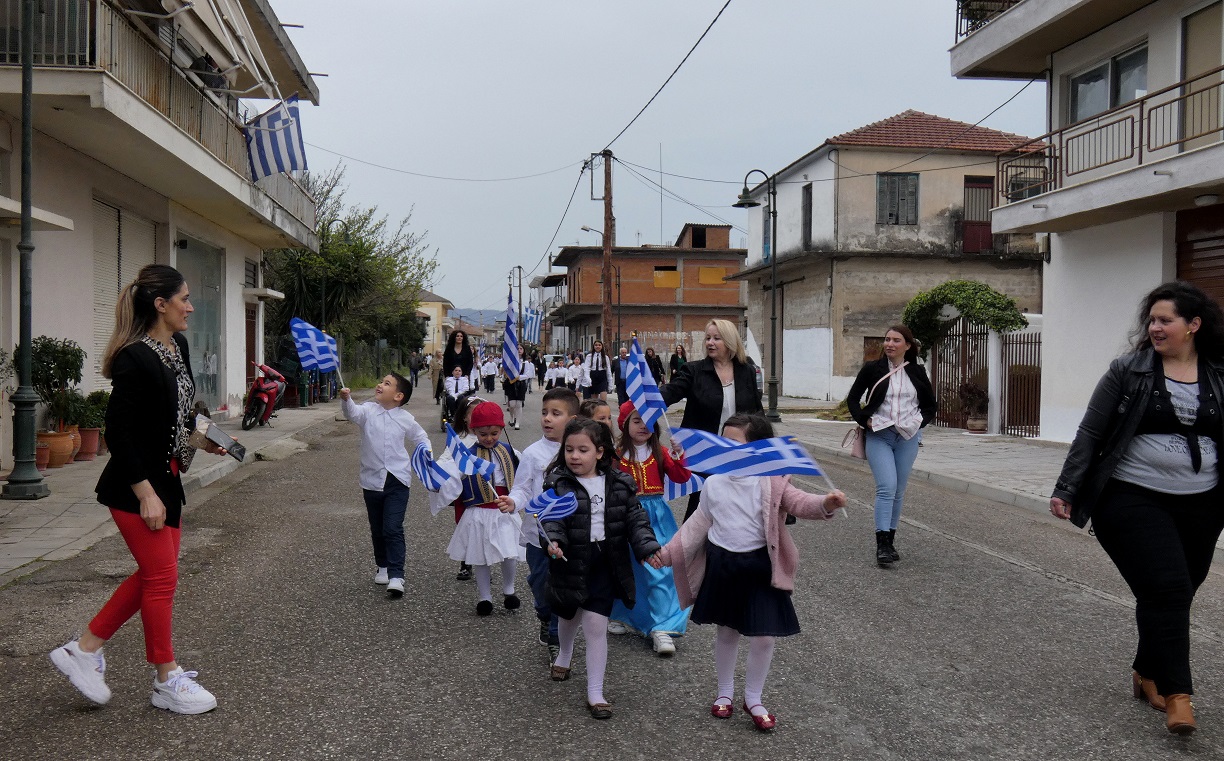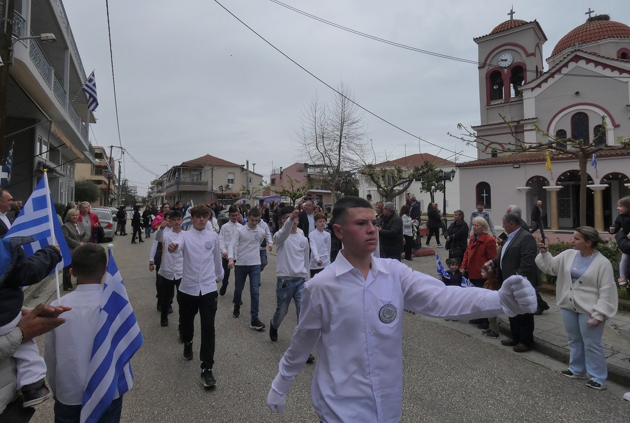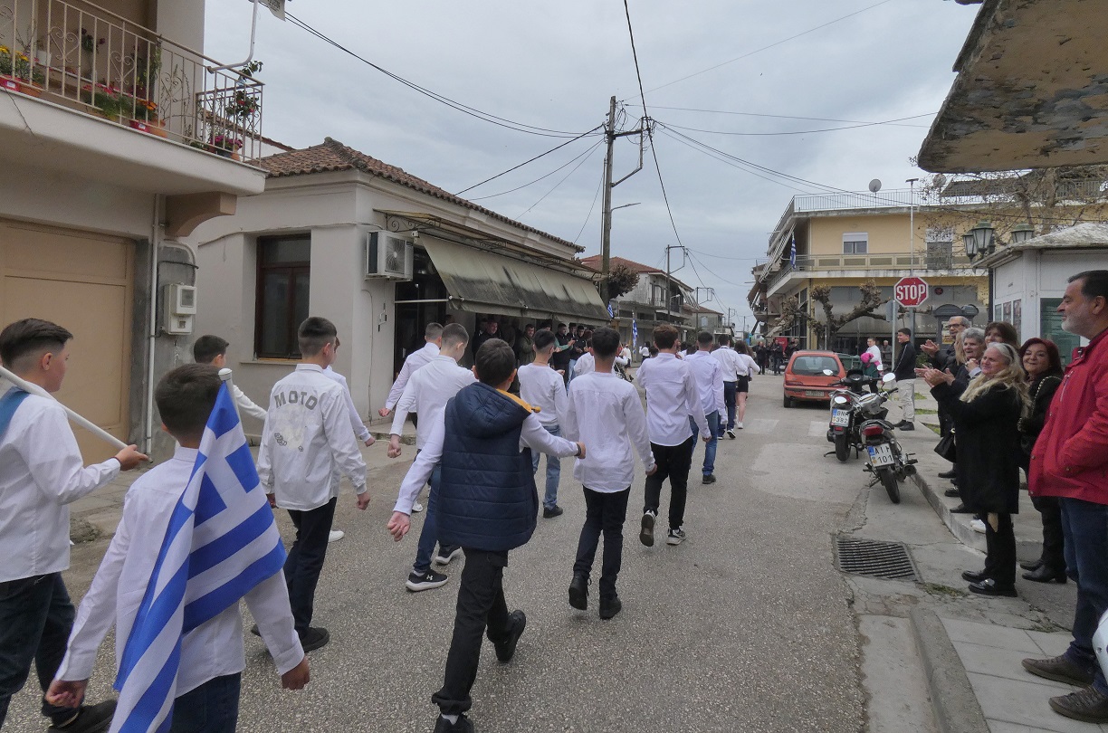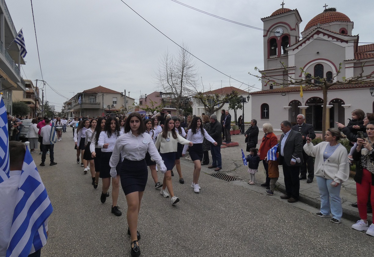 Αμέσως μετά, στους κεντρικούς δρόμους του χωριού μας, οι κάτοικοι παρακολούθησαν και χειροκρότησαν την παρέλαση των μαθητών του Νηπιαγωγείου, του Δημοτικού Σχολείου και του Γυμνασίου Καλυβίων, για να ολοκληρωθεί η πορεία στο Μνημείο των Πεσόντων, όπου τελέσθηκε η επιμνημόσυνη δέηση για τους πεσόντες υπέρ Πατρίδος.