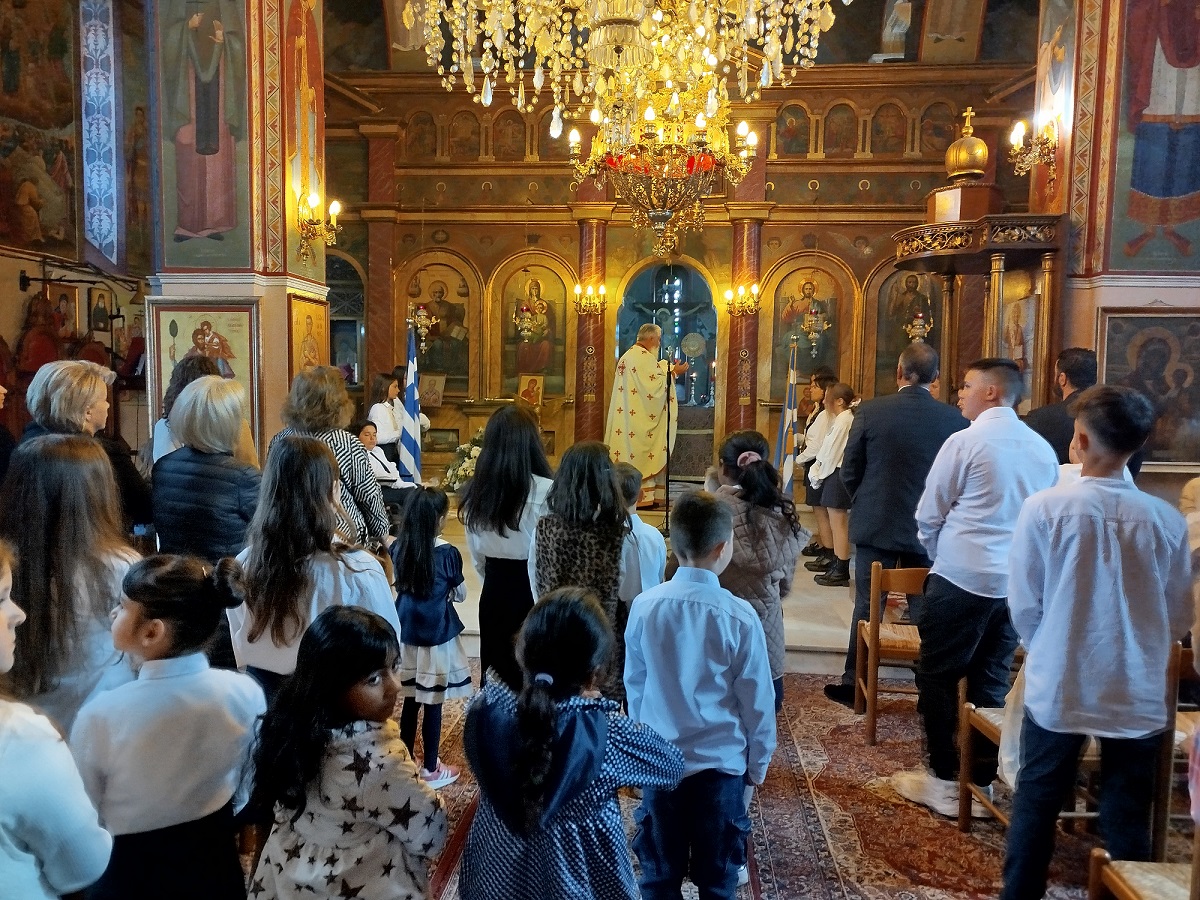 Το πρωί τελέσθηκε η Θεία Λειτουργία και η Δοξολογία από τον ιερέα π. Θεοδόση Αθανασόπουλο και στη συνέχεια εκφώνησε την επετειακή ομιλία ο Καθηγητής Φυσικής Αγωγής, κ. Χρήστος Μπεκούλης, ο οποίος αναφέρθηκε στα ιστορικά γεγονότα της εποχής, καθώς και στην διαμόρφωση της θρησκευτικής και εθνικής συνείδησης.