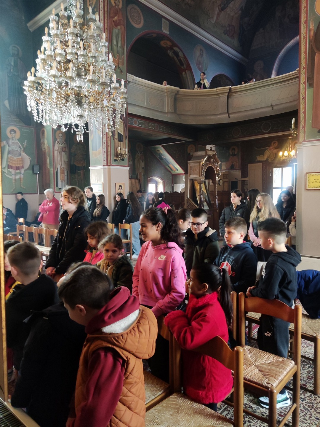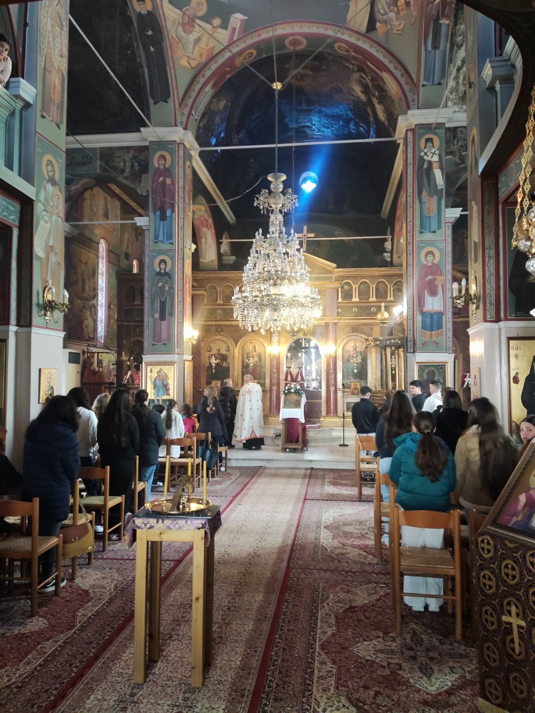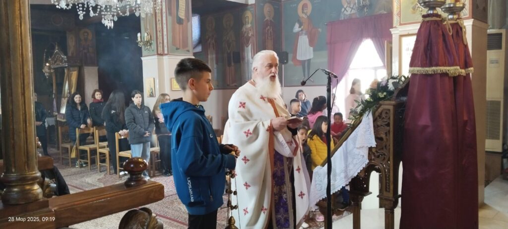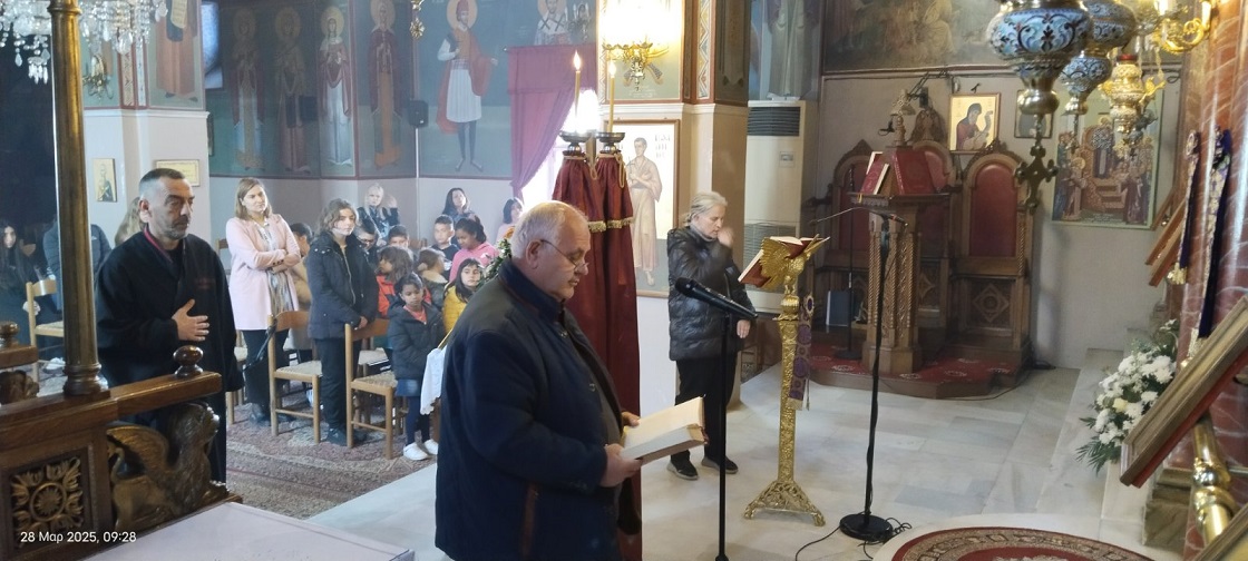 Οι εκπαιδευτικοί Σωτήρης Ζορμπαλάς και Σωτηρία Καραγιώργου έψαλλαν τους Οίκους των Χαιρετισμών ενώπιον της Εικόνας της Θεοτόκου και μετά την απόλυση των Χαιρετισμών, οι μαθητές συνέχισαν τα μαθήματα στα σχολεία τους.