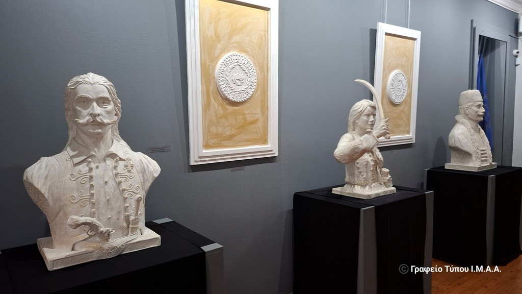 Η έκθεση περιλαμβάνει είκοσι ανδριάντες και προτομές ηρώων της Εξόδου και της Επανάστασης γενικότερα και ισάριθμα γύψινα έργα που σηματοδοτούν τον Απελευθερωτικό Αγώνα του ΄21.