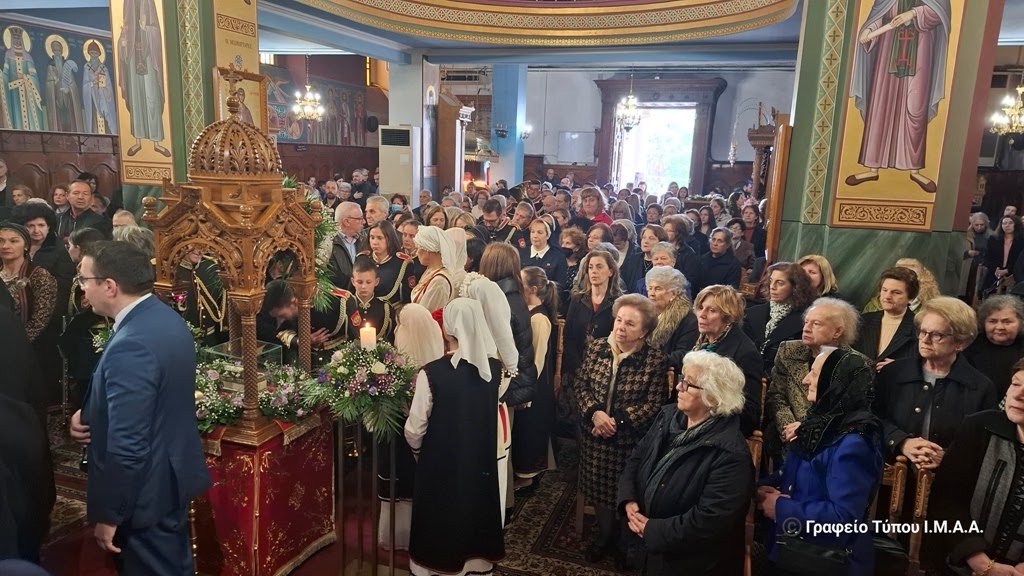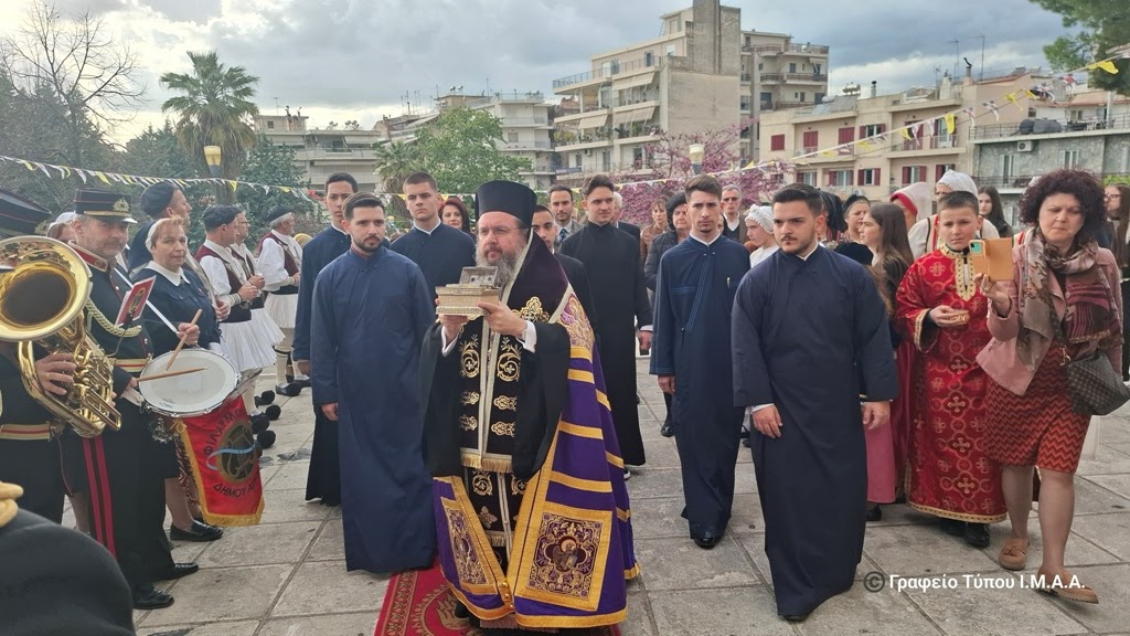 Η υποδοχή των ιερών κειμηλίων πραγματοποιήθηκε στον προαύλιο χώρο του Ιερού Ναού από τον Σεβασμιώτατο Μητορπολίτη Αιτωλίας και Ακαρνανίας κ. Δαμασκηνό, με τη συμμετοχή του Ιερού Κλήρου της πόλεως του Αγρινίου, με επικεφαλής τον Αρχιερατικό Επίτροπο Αγρινίου, Αρχιμ. Νεκτάριο Τριάντη και του πιστού Λαού, μεταξύ των οποίων ήταν η Αντιδήμαρχος κα Μαρία Παπαγεωργίου και ο Πρόεδρος του Δημοτικού Συμβουλίου κ. Κωνσταντίνος Ζώης.