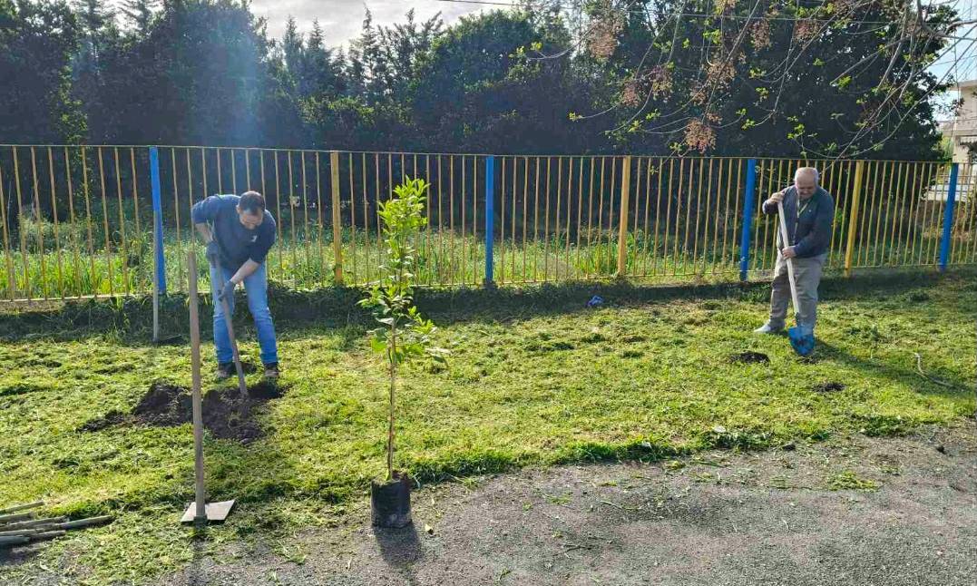 Στο Δημοτικό Σχολείο Καλυβίων Αγρινίου, πραγματοποιήθηκε σήμερα περιμετρική δεντροφύτευση στη νότια και ανατολική πλευρά του, σε συνέχεια της δράσης για τη βελτίωση της σχολικής αυλής. Η δεντροφύτευση πραγματοποιήθηκε από τους γονείς και παραγωγούς οπωροφόρων φρούτων, Ηλία Δρακόπουλο και Βασιλική Αυγέρη.