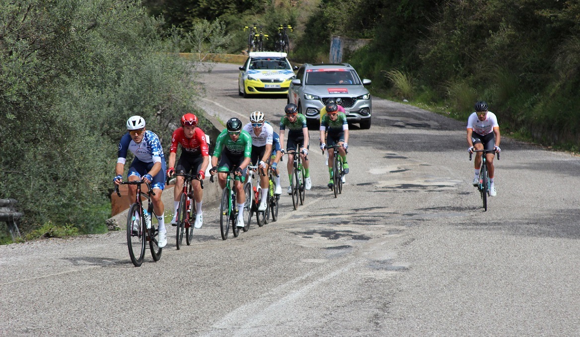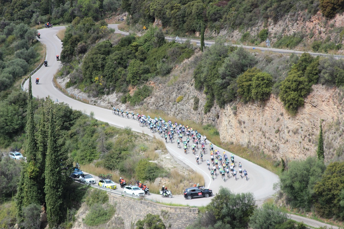 Με τα τρία πρώτα σπριντ να έχουν ολοκληρωθεί και λίγο μετά την απότομη αριστερή στροφή στη Ναύπακτο, η διαφορά των «ξεκολλημένων» με το πελοτόν είχε ξεπεράσει τα πεντέμισι λεπτά.