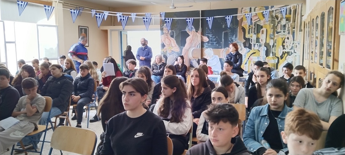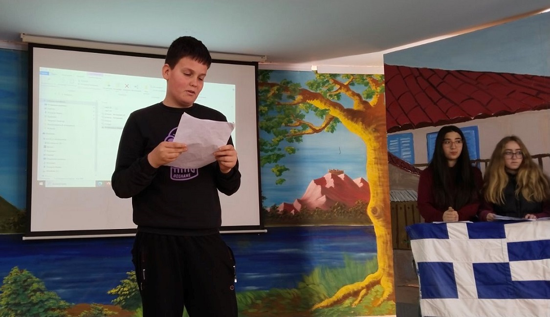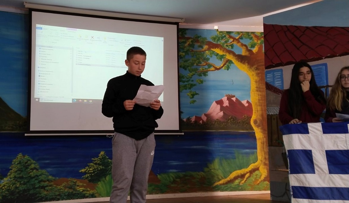 Στο τέλος της εκδήλωσης εκπαιδευτικοί και μαθητές τραγούδησαν τον Ελληνικό Εθνικό Ύμνο!