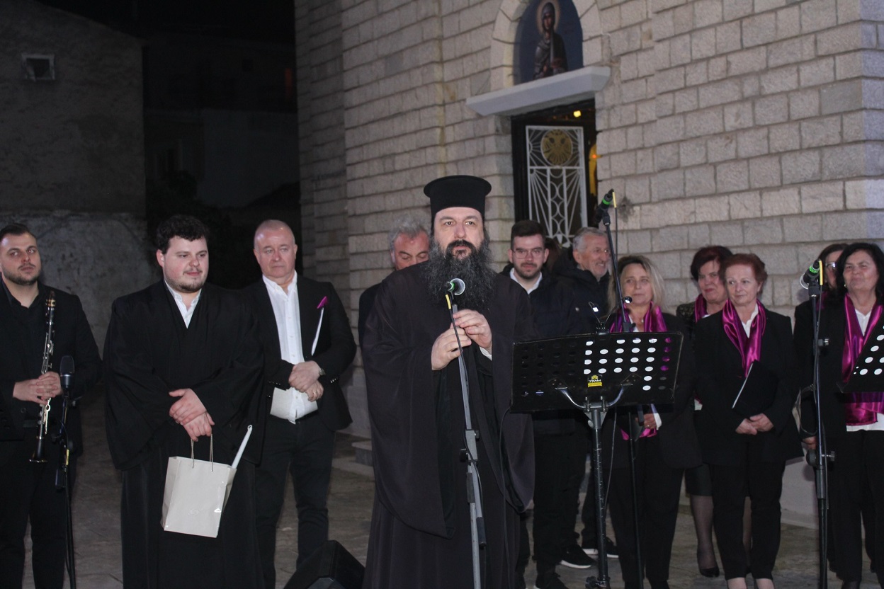 Μια ξεχωριστή εκδήλωση υπό τον τίτλο «Οδεύοντας προς το θείον Πάθος» με ύμνους της μεγάλης Εβδομάδας, πραγματοποιήθηκε χθες Παρασκευή 11 Απριλίου, στην Αμφιλοχία, στον αύλειο χώρο του ιερού Ναού της Αγίας Παρασκευής με την χορωδία"Μαιστράλι" της Αμφιλοχίας Δίοδος και συνοδεία παραδοσιακών οργάνων.