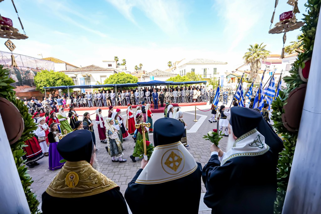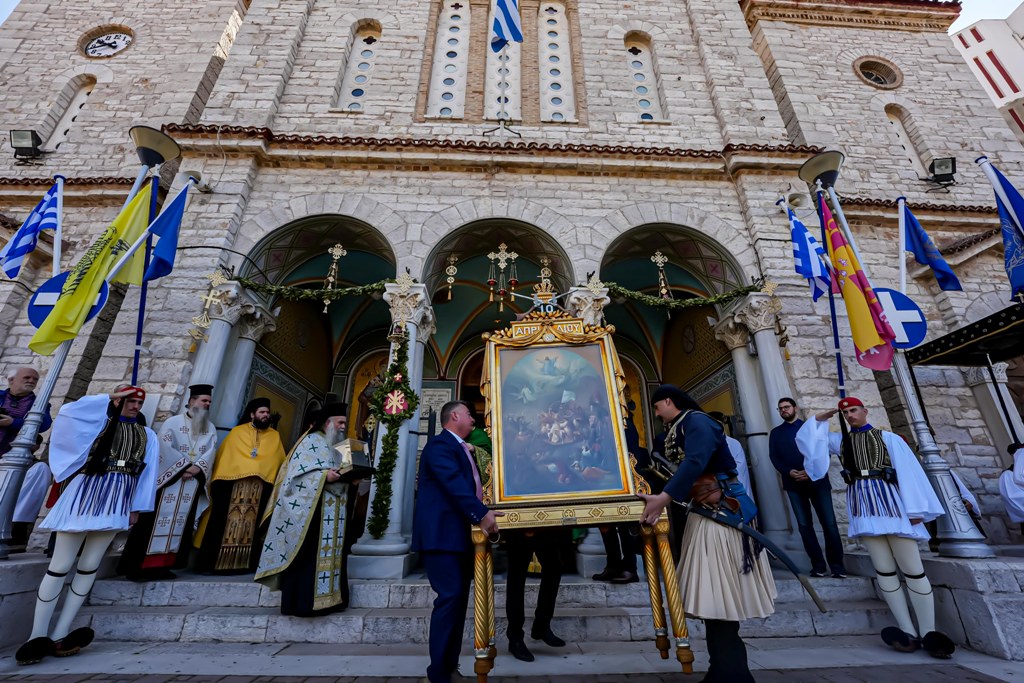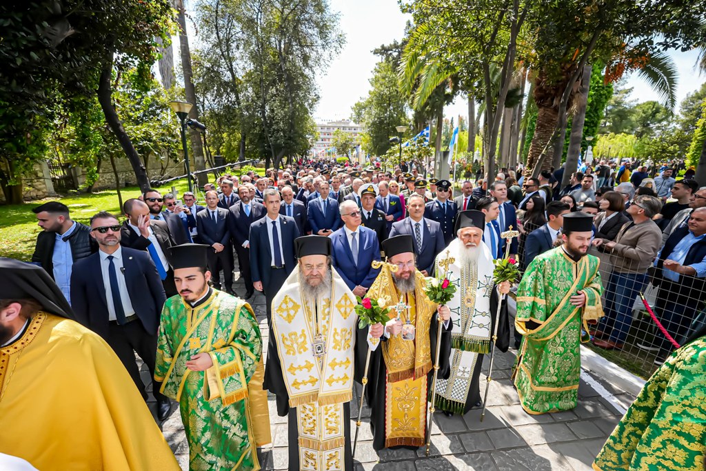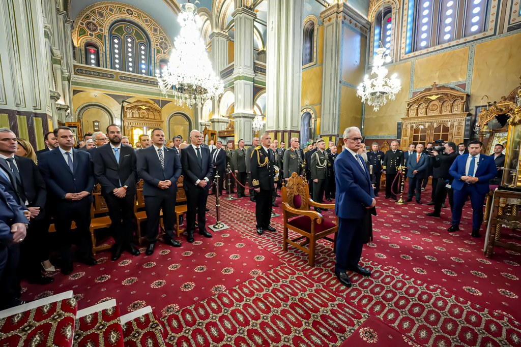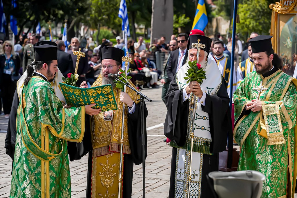 Ακολούθησε η επίσημη Δοξολογία, προεξάρχοντος του Μητροπολίτου Αιτωλίας και Ακαρνανίας κ. Δαμασκηνού, παρουσία του Εξοχωτάτου Προέδρου της Ελληνικής Δημοκρατίας κ. Κωνσταντίνου Τασούλα.