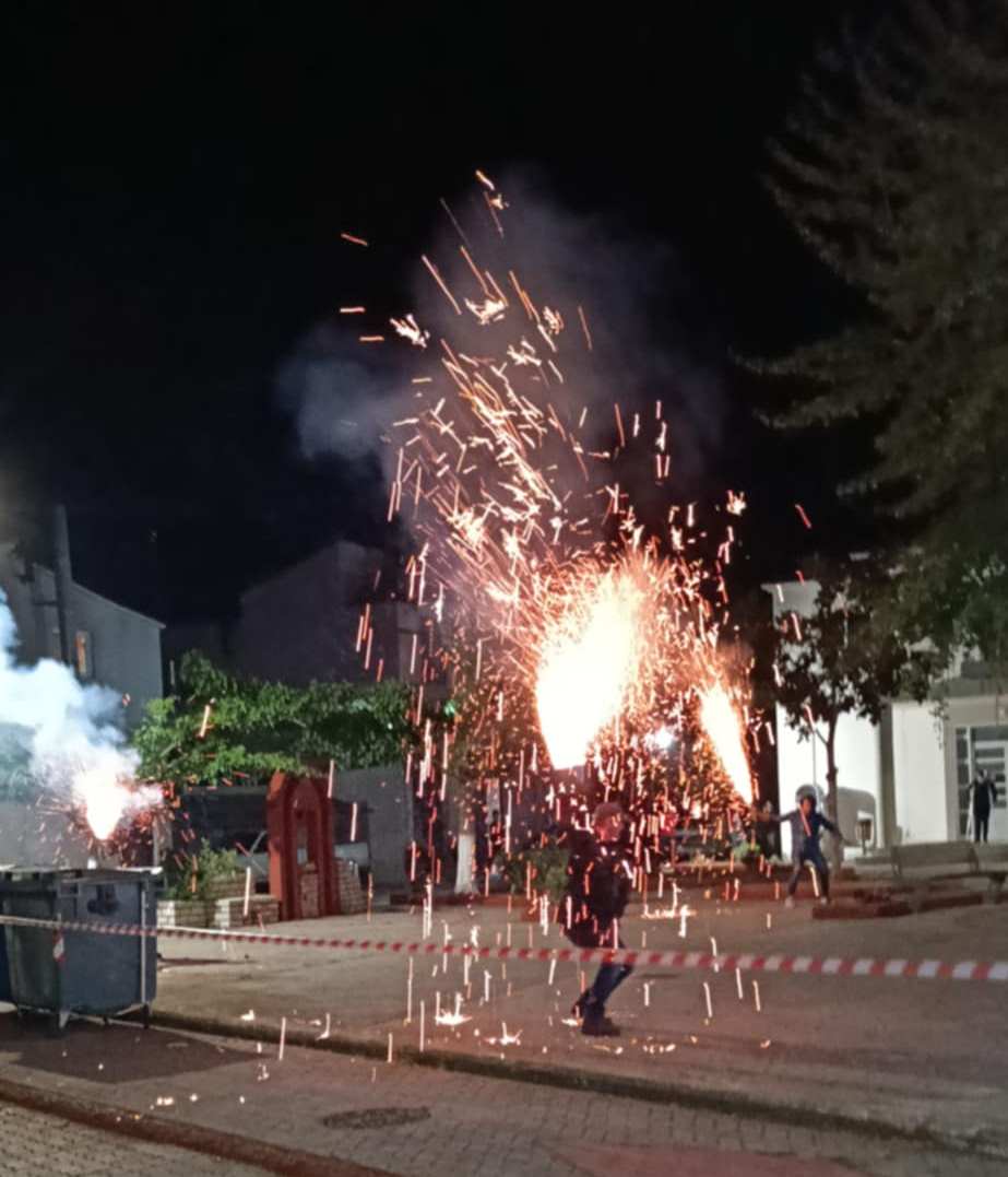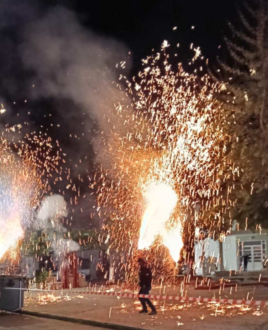 Επίδειξη Χαλκουνιών από χαλκουνάδες πραγματοποιήθηκε απόψε Μεγάλη Τετάρτη, στην πλατεία Καλυβίων, μετά το πέρας της Ακολουθίας του Νιπτήρος στον Ι.Ν. Αγίου Νικολάου, με πολλούς κατοίκους να παρακολουθούν το εντυπωσιακό θέαμα των πυροτεχνημάτων.