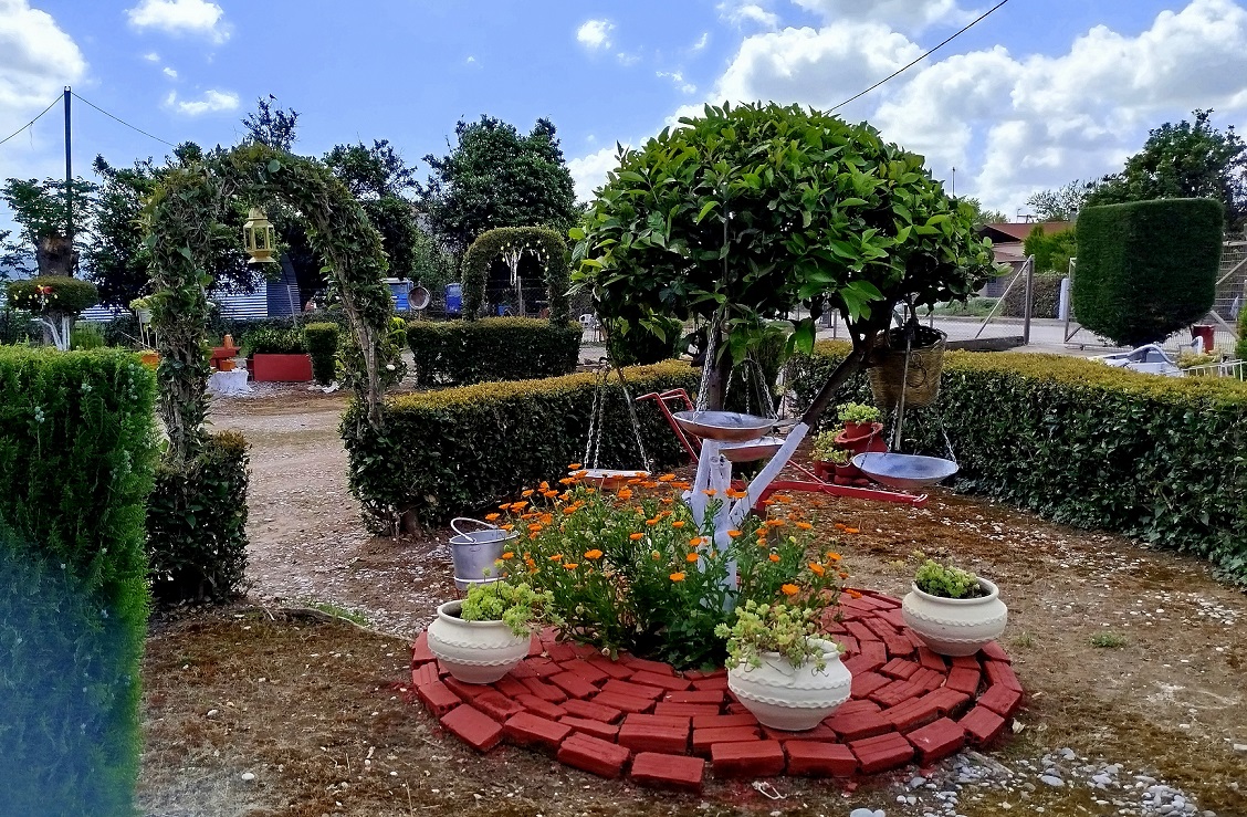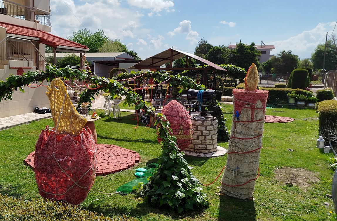 Ένα μικρό θεματικό πάρκο, με μεγάλα διακοσμητικά αυγά, με συνθέσεις λουλουδιών και πολύχρωμων βαμμένων αυγών κρεμασμένα στο κιόσκι ή στο φράκτη, τοποθετημένα δίπλα στα παλιά αντικείμενα που έχει συγκεντρώσει με προσωπικό κόπο, η κυρία Νίκα, ενώ ένα παλιό ποδήλατο και μια βρύση (τρόμπα) ξεχωρίζουν ανάμεσα στα άλλα κομμάτια της συλλογής της…