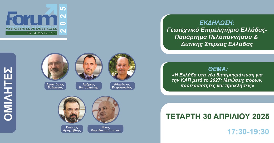 Θέμα: «Η Ελλάδα στη νέα διαπραγμάτευση για την ΚΑΠ μετά το 2027: Μειώσεις πόρων, προτεραιότητες και προκλήσεις»