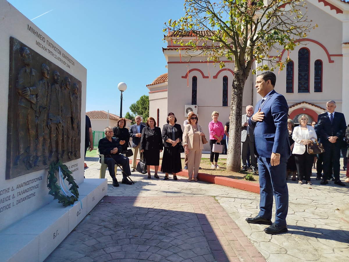 Την κεντρική ομιλία έκανε ο Πρόεδρος της Κοινότητας Καλυβίων, Δημήτρης Αναστασίου, ο οποίος αναφέρθηκε στο ιστορικό της ημέρας αναφέροντας ότι: «Είμαστε όλοι σήμερα εδώ για να τιμήσουμε τους ανθρώπους που έδωσαν τη ζωή τους για την ελευθερία της πατρίδας και εκτελέστηκαν από τα γερμανικά στρατεύματα κατοχής. Εκδηλώσεις σαν τη σημερινή είναι γέφυρες που ενώνουν το σήμερα με το χθες, το σήμερα με το παρελθόν, με την ιστορία».