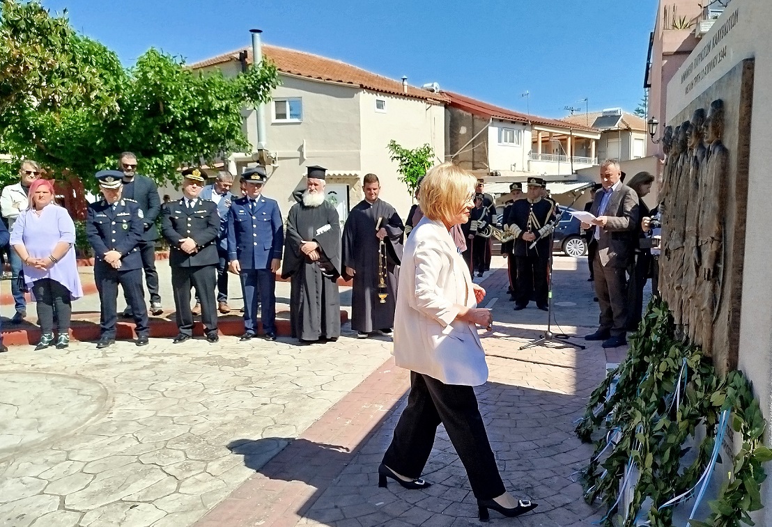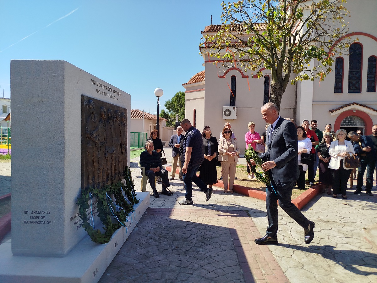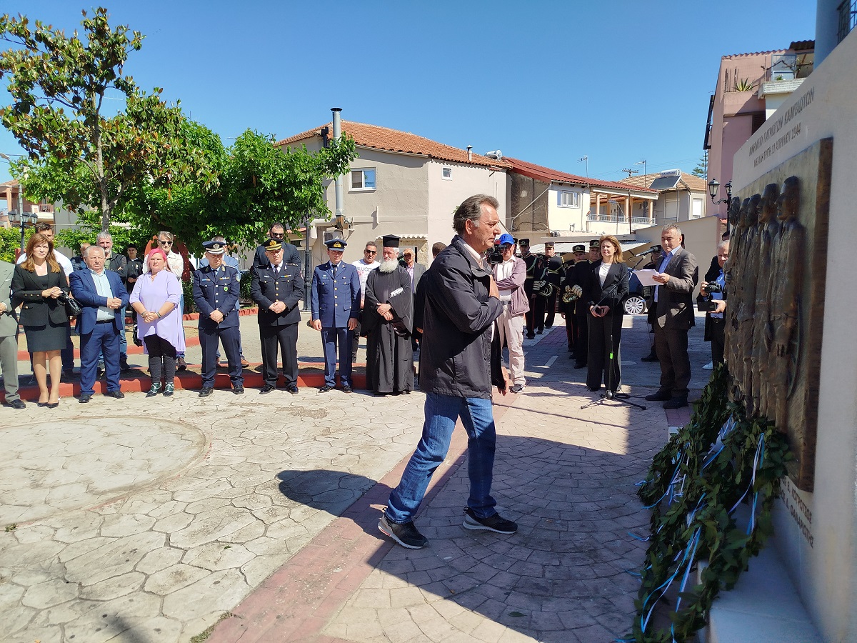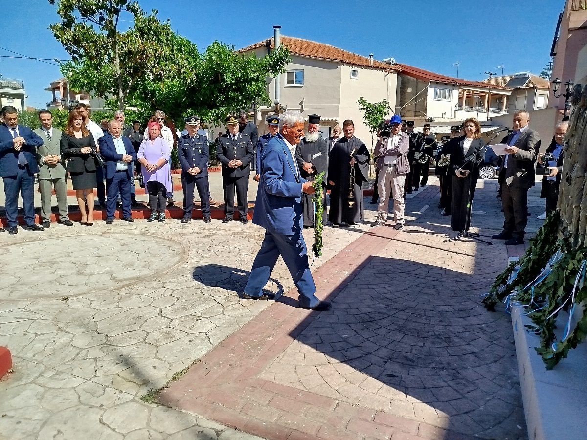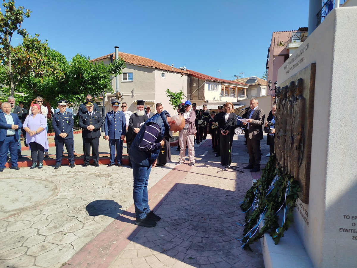 Παρέστησαν και κατέθεσαν στεφάνια, ο Δήμαρχος Αγρινίου, Γιώργος Παπαναστασίου, ο Πρόεδρος του Δημοτικού Συμβουλίου, Κωνσταντίνος Ζώης, εκ μέρους της Περιφέρειας Δυτ. Ελλάδος, ο Εντεταλμένος Σύμβουλος, Γιώργος Κοντογιάννης, ο Βοηθός Αστυνομικού Διευθυντή Ακαρνανίας Θ. Νταλαπέρας, ο εκπρόσωπος του αποσπάσματος Αγρινίου της Ελληνικής Πολεμικής Αεροπορίας, ο Υποδιοικητής της Πυροσβεστικής Υπηρεσίας Αγρινίου, Αντιπύραρχος Βασ. Μαδιάς, ο Πρόεδρος της Κοινότητας Αγρινίου, Κώστας Μποκώρος, ο εκπρόσωπος της μείζονος αντιπολίτευσης Δημήτρης Τριανταφυλλάκης, ο εκπρόσωπος του κόμματος "ΝΙΚΗ" Βασίλης Μαλεσιάδας, ο Πρόεδρος της Κοινότητας Αγίου Κωνσταντίνου Αγρινίου, Γιώργος Σταύρου, η Πρόεδρος του Συλλόγου Γυναικών Καλυβίων, Μαίρη Ζαπαντιώτη, η εκρπόσωπος της Χορωδίας Καλυβίων, Ιφιγένεια Χρυσικού και συγγενείς των οικογενειών.