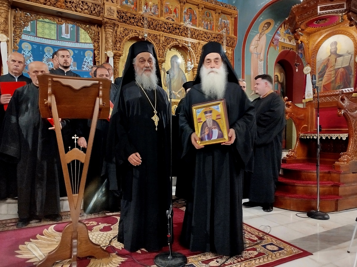 Ο Πρωτοσύγκελλος π. Θεόκλητος Ράπτης, εξήρε το ήθος και τον πολύχρονο μοναστικό βίο του Γέροντα Μάξιμου και στο τέλος του πρόσφερε ως δώρο, μια εικόνα του Αγίου Κοσμά του Αιτωλού!