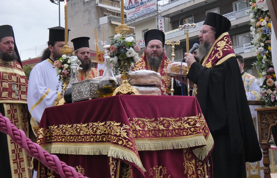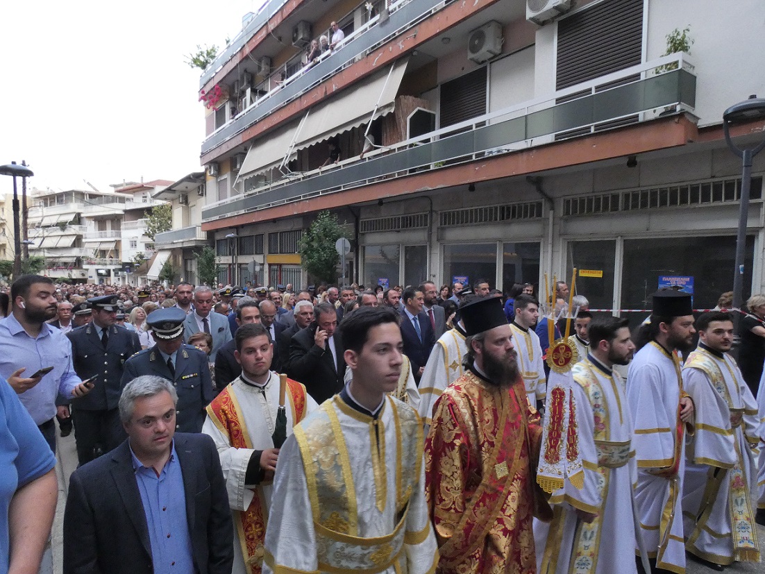 Το απόγευμα, με εκκλησιαστική λαμπρότητα τελέστηκε η ακολουθία του μεθέορτου Εσπερινού στον νέο Ιερό Ναό του Αγίου Χριστοφόρου ενώ κατόπιν σύσσωμος ο ιερός κλήρος, οι πολιτικές και αυτοδιοικητικές αρχές, εκπρόσωποι των Σωμάτων Ασφαλείας, πολιτιστικοί σύλλογοι και πλήθος πιστών, συμμετείχαν πάνδημα στην λιτάνευση της ιερής εικόνας στους δρόμους της πόλης. Ο Μητροπολίτης Νέας Κρήνης και Καλαμαριάς κ. Ιουστίνος, Πολυανής και Κιλκισίου κ. Βαρθολομαίος, Φλωρίνης, Πρεσπών και Εορδαίας κ. Ειρηναίος και Αιτωλίας και Ακαρνανίας κ. Δαμασκηνός συνόδευσαν την εικόνα.