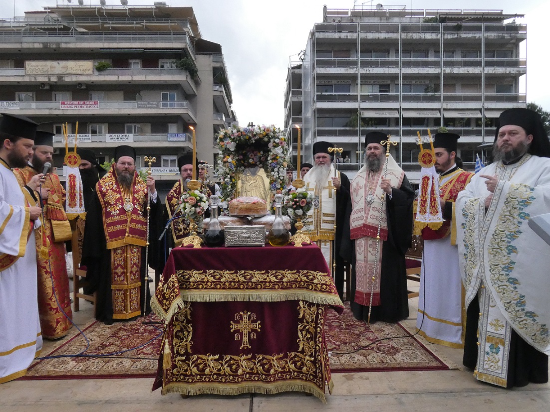 Αμέσως μετά η πομπή μετέφερε την Ιερά Εικόνα στο νέο Ιερό Ναό Αγίου Χριστοφόρου.