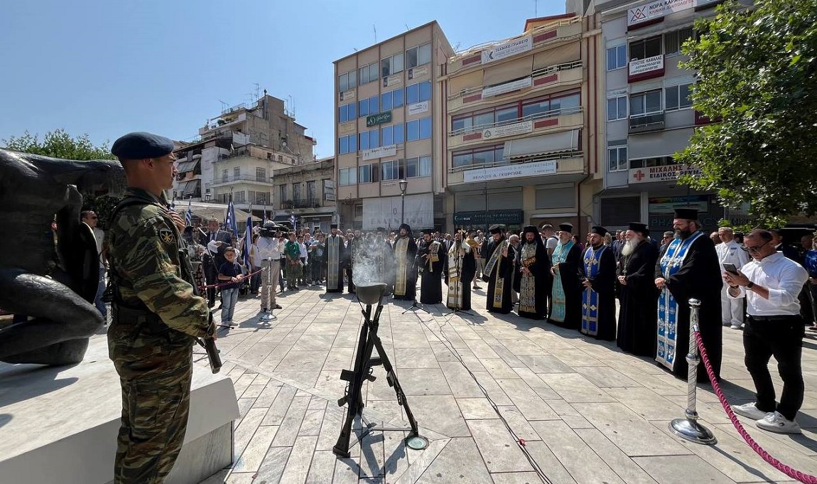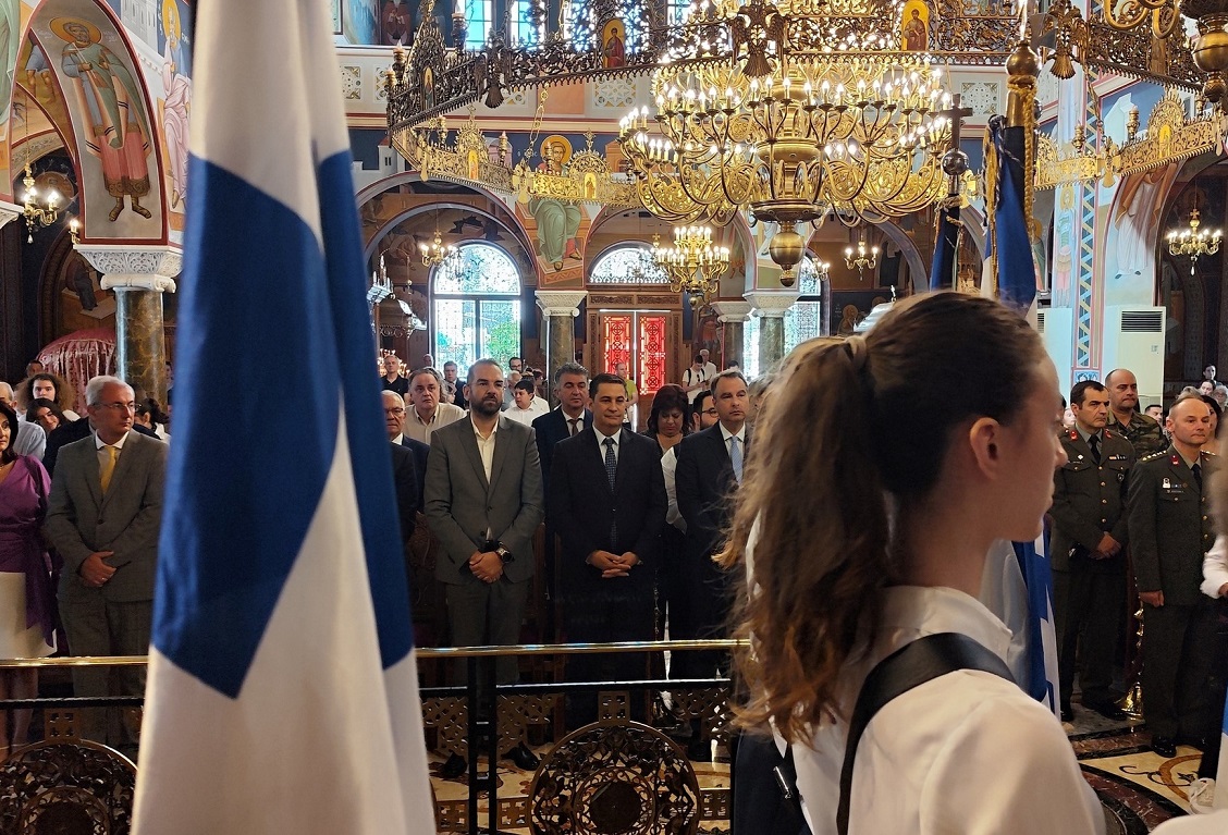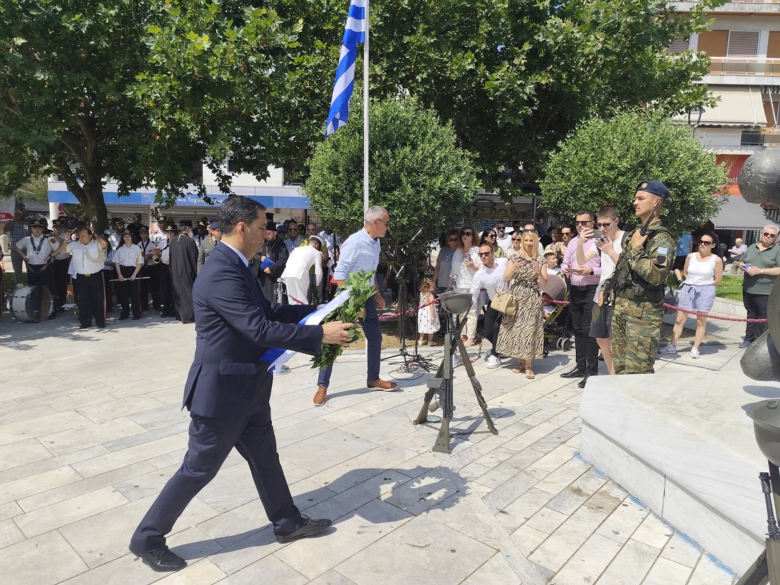 Ακολούθησε η Επιμνημόσυνη δέηση και η κατάθεση στεφάνων στο Μνημείο των Πεσόντων, στην Πλατεία Μαρίας Δημάδη από τις επίσημες αρχές, μαθητές των Σχολείων Α/θμιας και Β/θμιας Εκπαίδευσης κλπ.