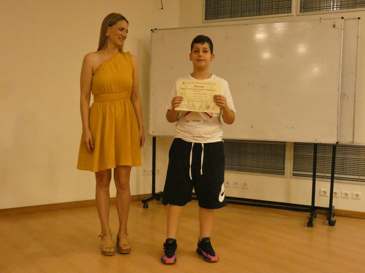 Και φυσικά, στους μαθητές μας, τους πραγματικούς πρωταγωνιστές της εκδήλωσης: Συγχαρητήρια για τις διακρίσεις σας! Να είστε περήφανοι για όσα πετύχατε. Να συνεχίσετε να αγαπάτε τα Μαθηματικά, να αναζητάτε τη γνώση και να μην φοβάστε ποτέ να προκαλείτε τον εαυτό σας. Το ταξίδι στον κόσμο των Μαθηματικών είναι συναρπαστικό και έχει ακόμα πολλά να σας προσφέρει. Σας ευχαριστώ πολύ».