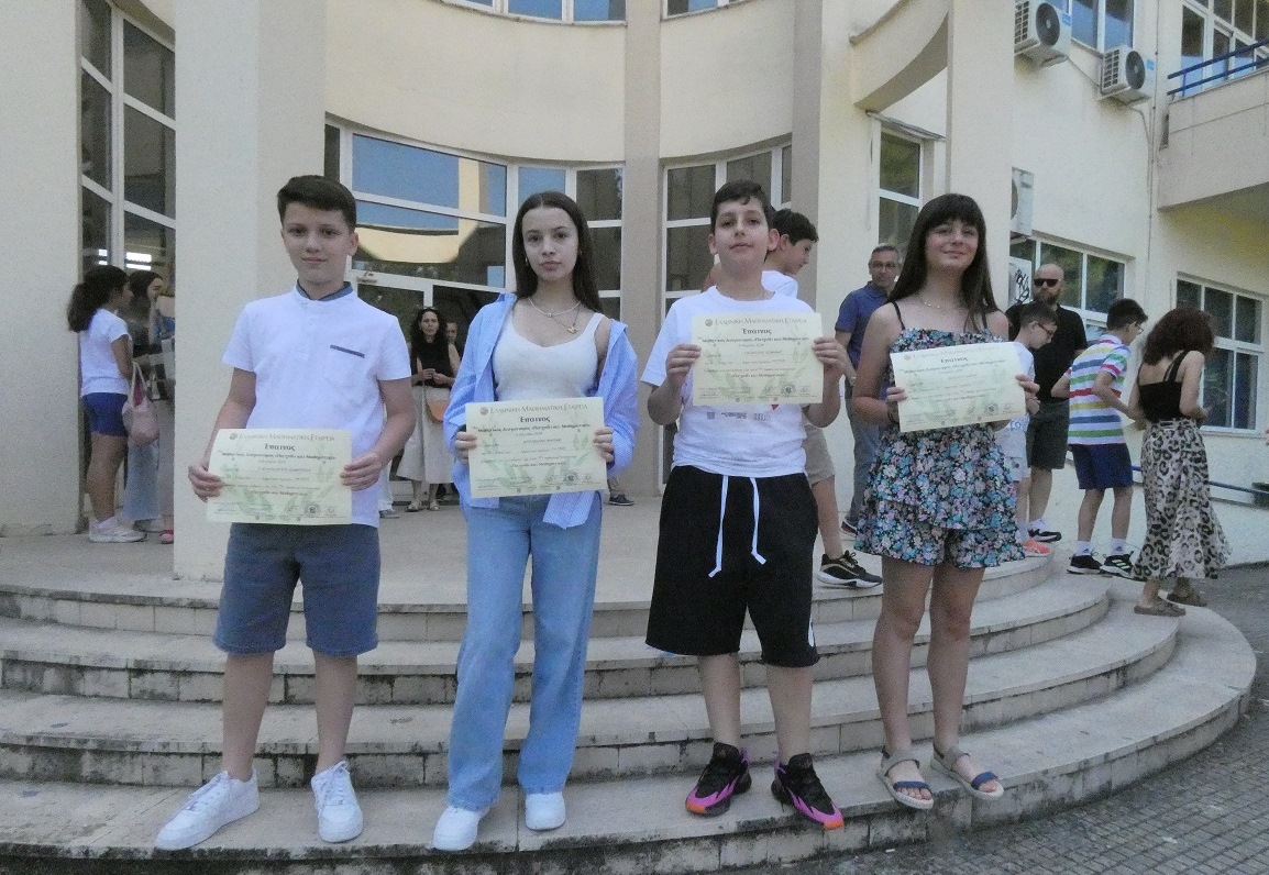 Έγιναν δυο τελετές βράβευσης, η πρώτη για μαθητές της Ε' και Στ' τάξης του Δημοτικού Σχολείου, σχολικού έτους 2023-2024, που διακρίθηκαν στον διαγωνισμό «Παιχνίδι και Μαθηματικά» και αμέσως μετά ακολούθησε η δεύτερη, για μαθητές που διακρίθηκαν στους διαγωνισμούς «Πυθαγόρας» «Θαλής», «Ευκλείδης» και «Αρχιμήδης», κατά το σχολικό έτος 2024-2025.
